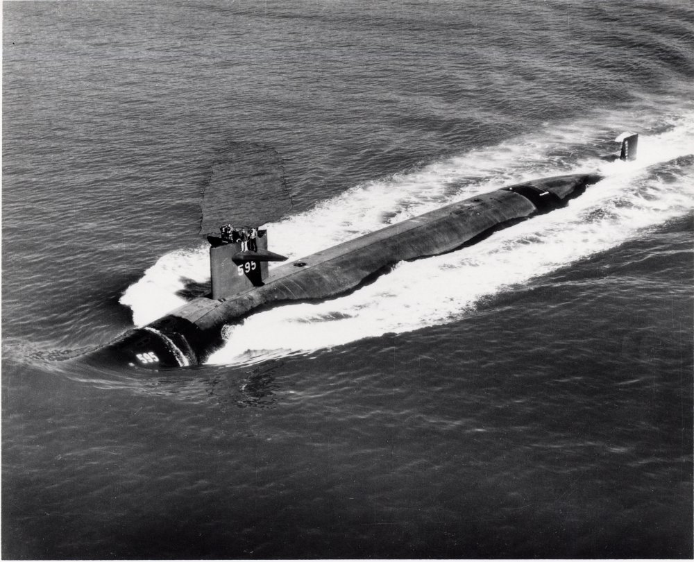 ![]() | 179k | Submarine Silhouettes of 1960: Nautilus (SSN-571), Seawolf (SSN-575), Skate (SSN-578), Skipjack (SS-585), Triton (SSRN-586), Halibut (SSGN-587), Thresher (SSN-593), Tullibee (SSN-597), George Washington (SSBN-598), & Ethan Allen (SSBN-608) classes. | USN photo submitted by Ron Titus, courtesy of Ingersoll-Rand. Corp. | |