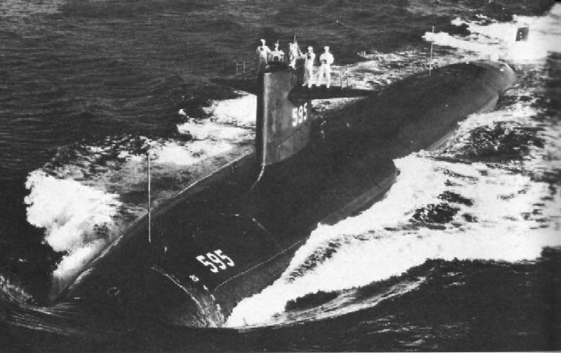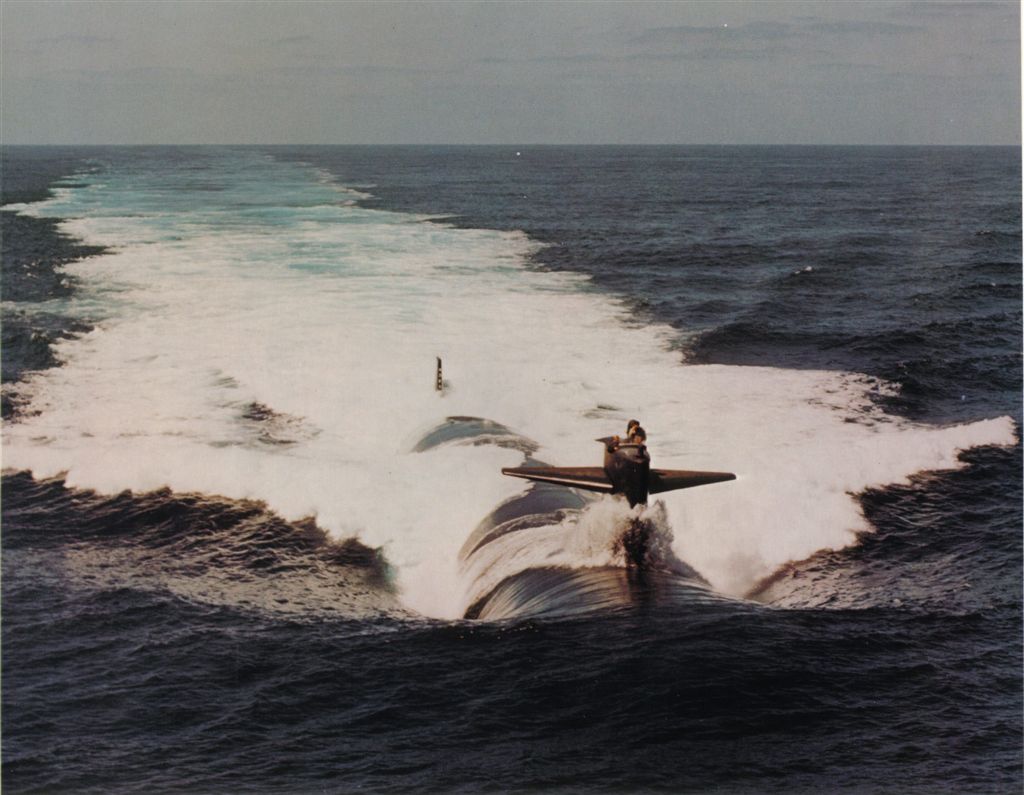 510k | A port bow view of the nuclear-powered attack submarine Plunger (SSN-595) underway off the Southern California coast, 2 April 1976. | USN photo # DN-SC-85-06050, by PHCS R. L. Lawson, from the Department of Defense Still Media Collection, courtesy of Robert Hurst. | |