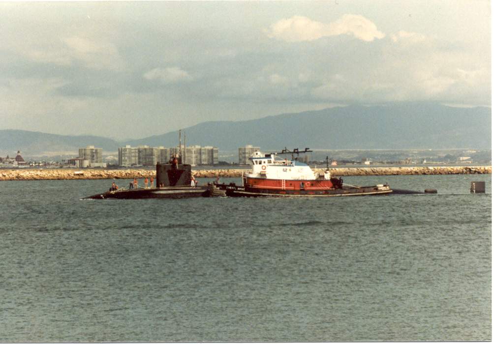 74k | Plunger (SSN-595) entering San Diego, 1985. | USN photo courtesy of Bob Shouse. | |
