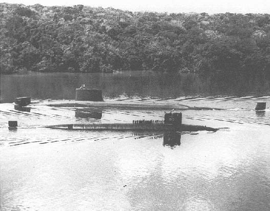 ![]() | 53k | Guardfish (SSN-612) and the Daniel Webster (SSBN-626), in the Panama Canal, 14 March 1970. We were heading back to Pearl after the shipyard in Miss. If I remember right this was the only time two nukes were in the canal at one time. It was some kind of a first. | Courtesy of Jeff Kelly / USS Guardfish web page. Partial text info courtesy of Skip Spahr, TM02 (SS) |