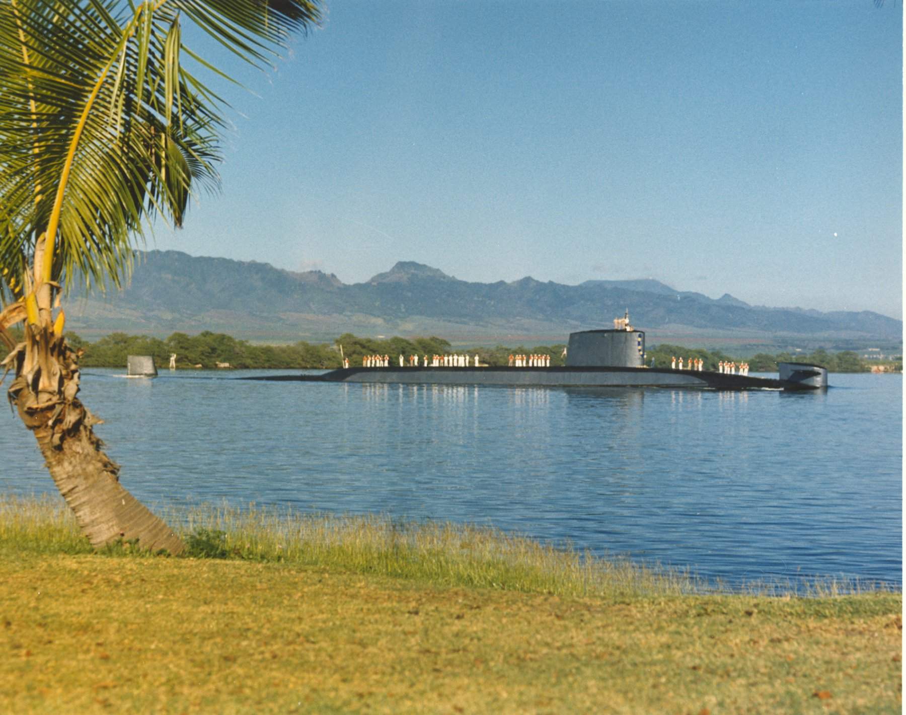 ![]() | 229k | Pulling into Pearl Harbor shortly afterwards the above photo was taken, the Daniel Webster (SSBN-626) glides past the palm tree in Pearl Harbor, Hawaii that seems to be in most submarines Photo in this section. | Photo courtesy of Don Hulse, EMC9SS0 (USN RET.) Partial text info courtesy of Skip Spahr, TM02 (SS). |