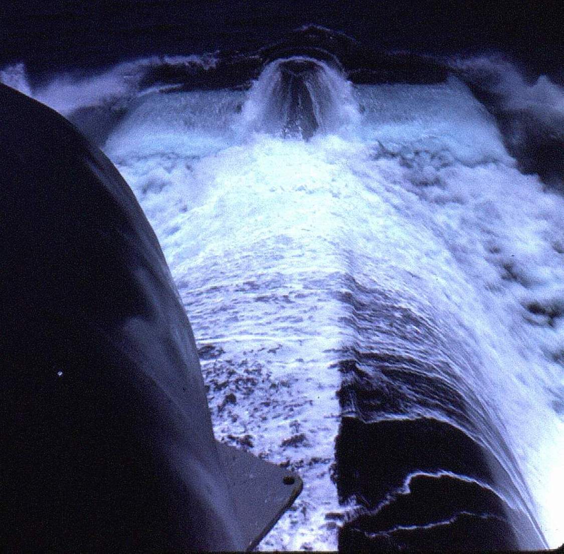 ![]() | 1.10k | Bow on view of the Daniel Webster (SSBN-626) during tests of her diving planes in April 1964. The idea behind the bow planes was to reduce the effect of porpoising, but they increased water resistance and lowered her overall speed. They were subsequently removed during a refit between 1976-78. Slightly different color photo appears here. | Partial text courtesy of Bill Roberts CDR, USN (Retired). US Navy Photo # NPC 711453 courtesy Scott Koen & ussnewyork.com. | |