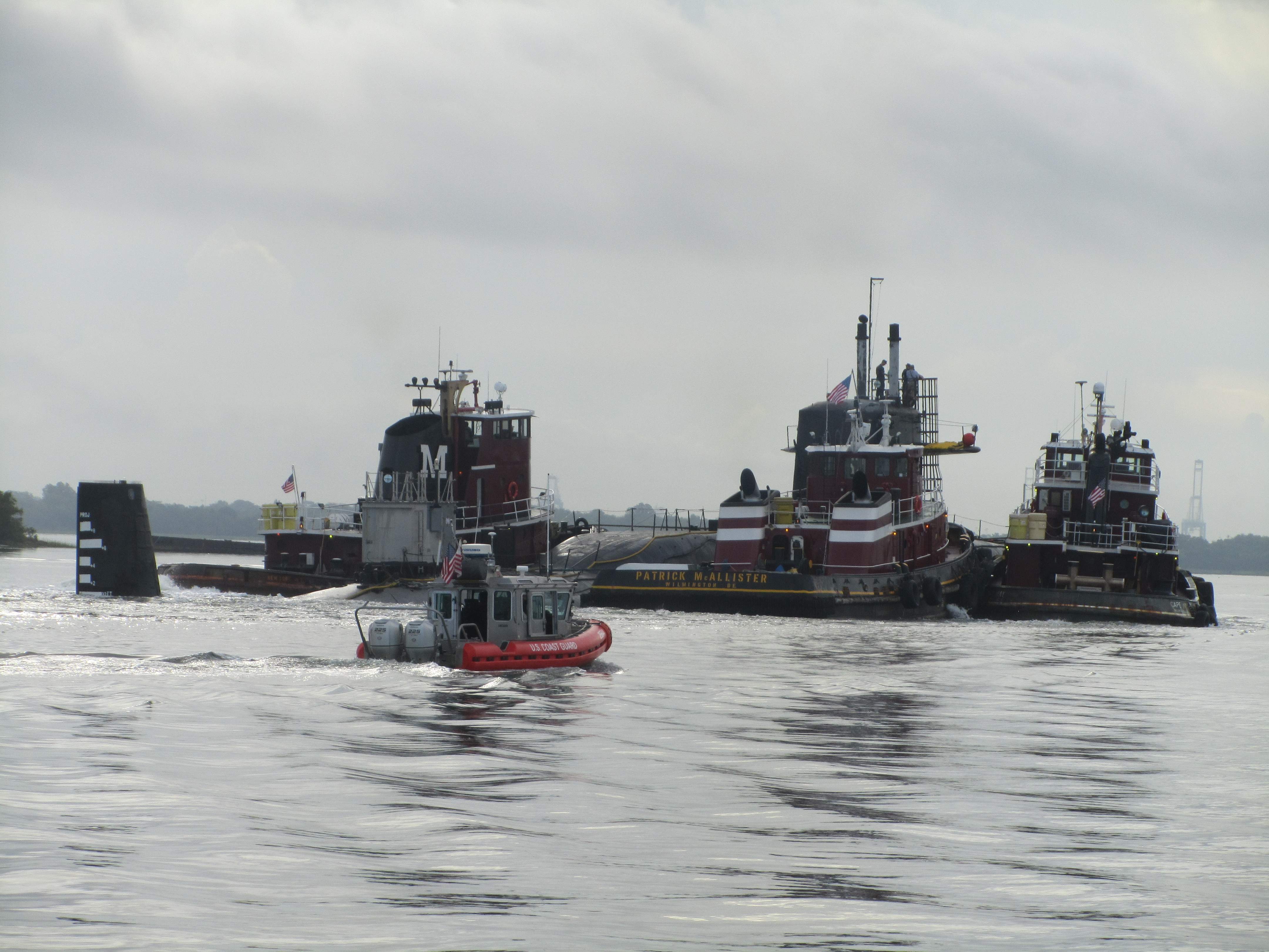 ![]() | 1.00k | Three tugs crowd the Daniel Webster (MTS-626) as she sailed under tow from Charleston,SC. to a scheduled overhaul in Virgina on 26 September 2011. | Photo courtesy of Captain Zane Johnston via Manning J. Harvey III. | |