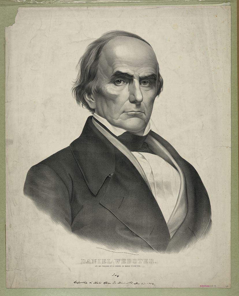 ![]() | 116k | Daniel Webster (18 January 1782 – 24 October 1852), was a leading American statesman during the nation's antebellum era. He first rose to regional prominence through his defense of New England shipping interests. His increasingly nationalistic views and the effectiveness with which he articulated them led Webster to become one of the most famous orators and influential Whig leaders of the Second Party System. Daniel Webster was an attorney, and served as legal counsel in several cases that established important constitutional precedents that bolstered the authority of the Federal government. As Secretary of State, he negotiated the Webster-Ashburton Treaty that established the definitive eastern border between the United States and Canada. Primarily recognized for his Senate tenure, Webster was a key figure in the institution's "Gogen days". So well-known was his skill as a Senator throughout this period that Webster became a third and northern counterpart of what was and still is known today as the "Great Triumvirate," with his colleagues Henry Clay from the west and John C. Calhoun from the south. His "Reply to Hayne" in 1830 was generally regarded as "the most eloquent speech ever delivered in Congress." Similar to Henry Clay, Webster's desire to see the Union preserved and conflict averted led him to search out compromises designed to stave off the sectionalism that threatened war between the North and South. Webster tried three times to achieve the Presidency; all three bids failed, the final one in part because of his compromises. Similarly Webster's efforts to steer the nation away from civil war toward a definite peace ultimately proved futile. Despite this, Webster came to be esteemed for these efforts and was officially named by the Senate in 1957 as one of its five most outstanding members. | Photo from the Library of Congress Prints and Photographs Division Washington, D.C. 20540 & submitted by Bill Gonyo. Partial text courtesy of Wikipedia. | |