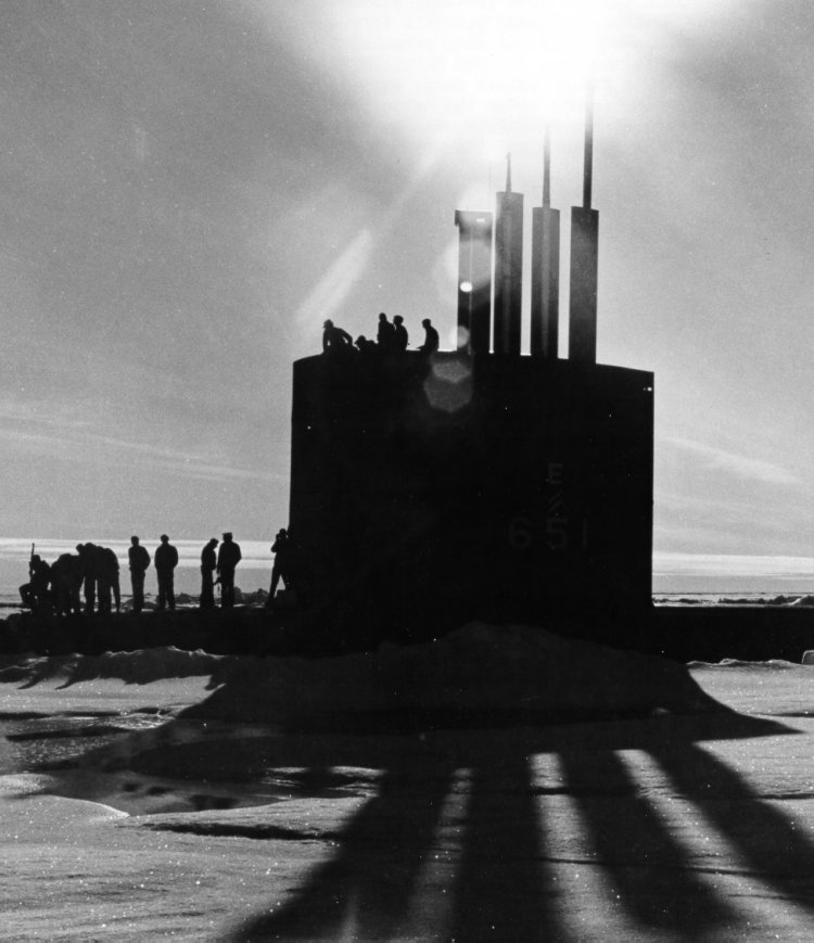 ![]() | 80k | Queenfish (SSN-651) at the North Pole, summer 1970. | USN photo courtesy - DOE, The Atomic Century web site. | |