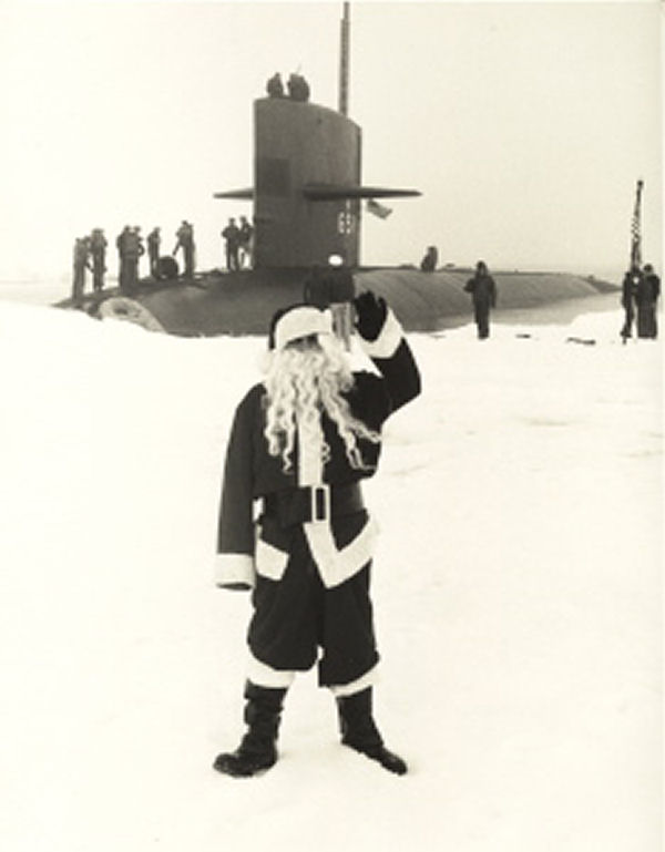 ![]() | 38k | Santa Claus greets crewmen of the Queenfish (SSN-651) at the North Pole (Chief Quartermaster Jack Pataterson as Santa), summer 1970. | USN photo courtesy of USNI. | |