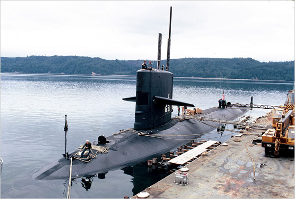 ![]() | 35k | Up scope. Another time, Commander McLaren looked through the periscope and saw ... | USN photo & text courtesy of NY Times from the article: "Queenfish: A Cold War Tale" 18 March 2008, by William J. Broad. | |