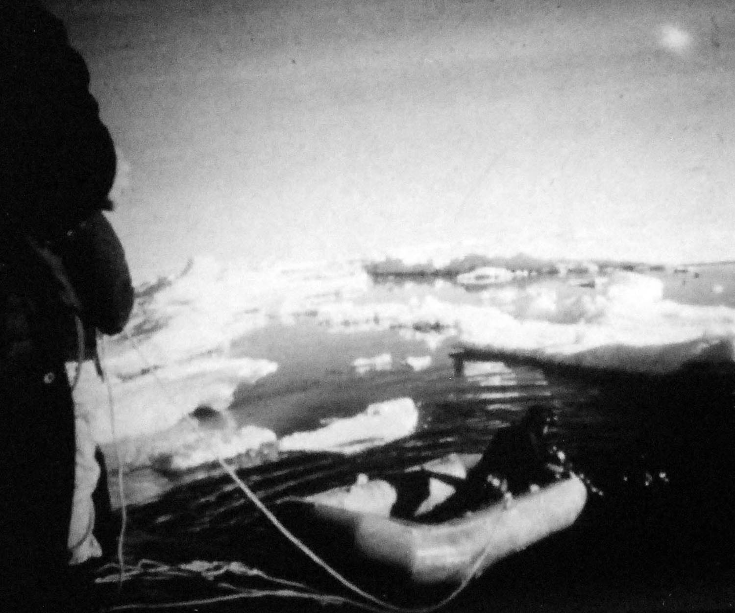 ![]() | 77k | The sun casts a shadow on the Queenfish (SSN-651) as she surfaces in the Arctic pack at a region of thin ice known as a polynya, possibly summer 1970. | USN photo courtesy of Robert Hurst. | |