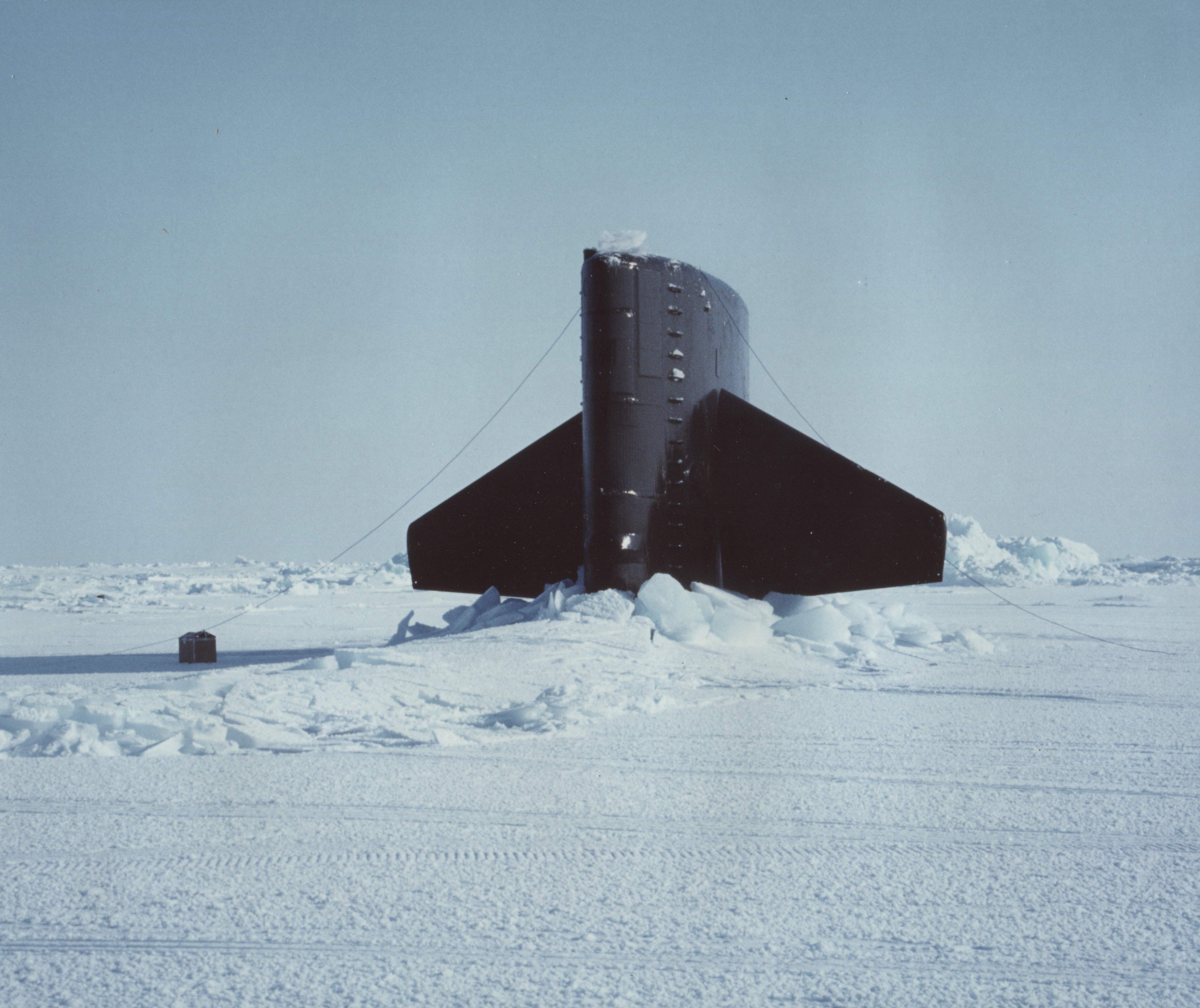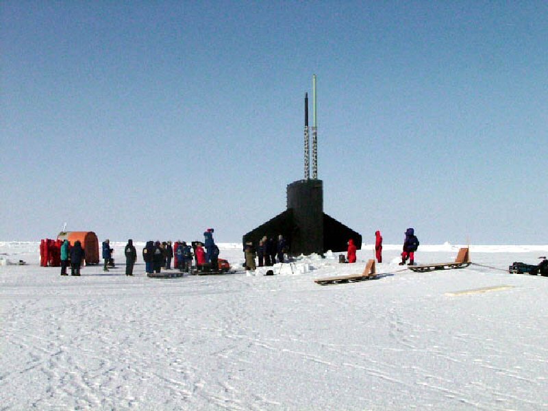 ![]() | 68k | The sail of the Lapon (SSN-661) protrudes through the ice at the North Pole, 6 April 1988. | USN photo courtesy of US Navy Arctic Submarine Laboratory & csp.navy.mil. | |