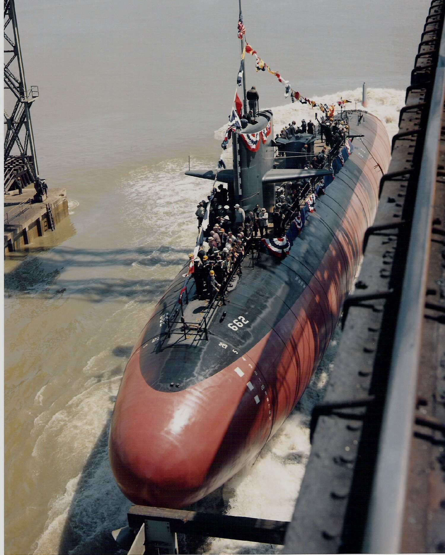 ![]() | 272k | Bow-on shot of the Gurnard's (SSN-662) launch platform prior to the arrival of celebrities. | Courtesy of Dan Danielson. | |