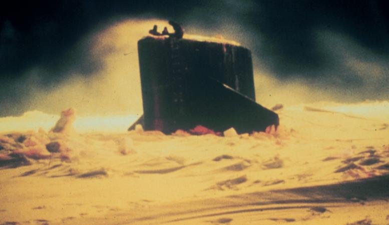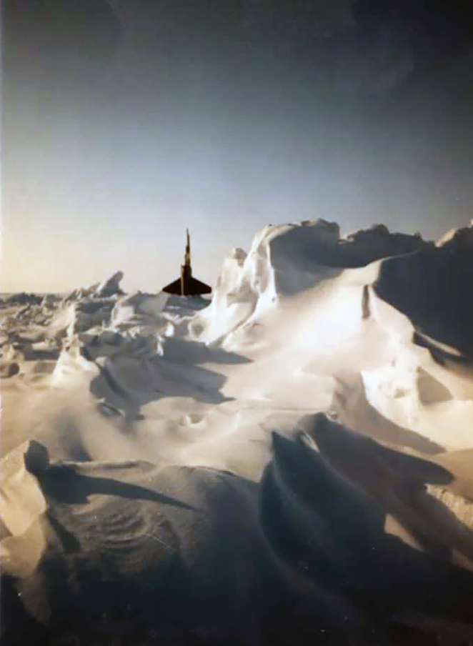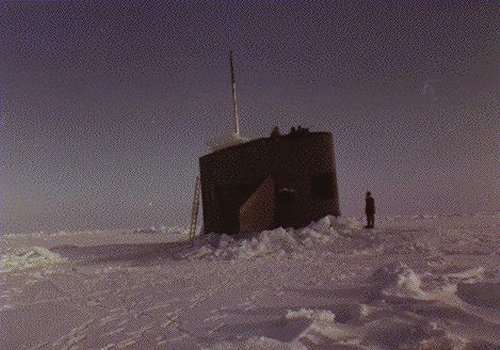 563k | The camp, used as a support base for under-ice operations of the nuclear-powered submarines Gurnard (SSN-662) and Seahorse (SSN-669), is dwarfed by the snow and icebound seascape. | USN photo # DN-ST-90-07317, by PH1 Harry Gerwien, from the Department of Defense Still Media Collection, courtesy of dodmedia.osd.mil. | |