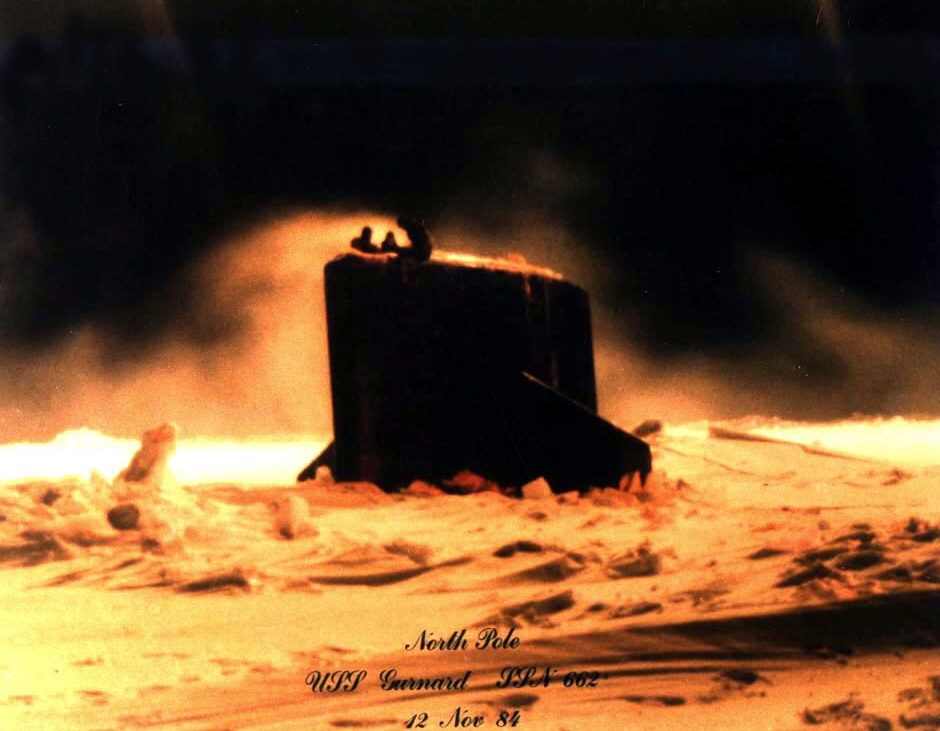 ![]() | 221k | Gurnard (SSN-662): Above the timberline problem of seeing the forest through the trees. A bit of history of this photo: I was on board the Gurnard from 2/88 until 8/90. I extended when I learned the boat was being tasked with an ICEX. So, being ship qualified, as well as qualifications as Sonar Supervisor, and Operator on all critical and superfluous systems, they were more than happy to have me extend, and participate on the ICEX. I took the picture with an inexpensive “film” camera, since inexpensive and easily portable digital cameras were still being developed. Once back, and after having the roll developed, I had really liked how this shot came out. I’d walked around on the other side that “hill” to ensure no foot prints were visible. After seeing it, we decided to have 2 5x7 prints developed…. Now I wish I had gotten an 8x10, and an 11x13…,but, between the extra expense, and having to worry about damage during a transfer, the 5x7’s were perfect. | USN photo courtesy of John A Martin, STS2(SS) Assigned to Gurnard (SSN-662) from 2/88 to 8/90. ICEX ‘90 aboard USS Gurnard The picture was taken April,1990, 1 1/2 miles from the actual North Pole. |