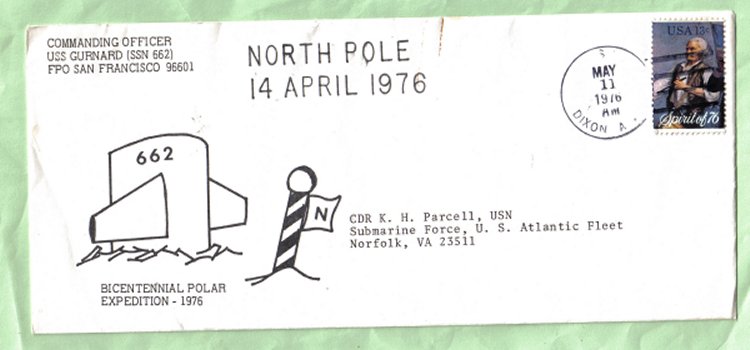 ![]() | 38k | Commemorative postal cover issued on the occasion of the Bicentennial Polar expedition of the Gurnard (SSN-662), 14 April 1976. | Courtesy of Jack Treutle (of blessed memory). | |