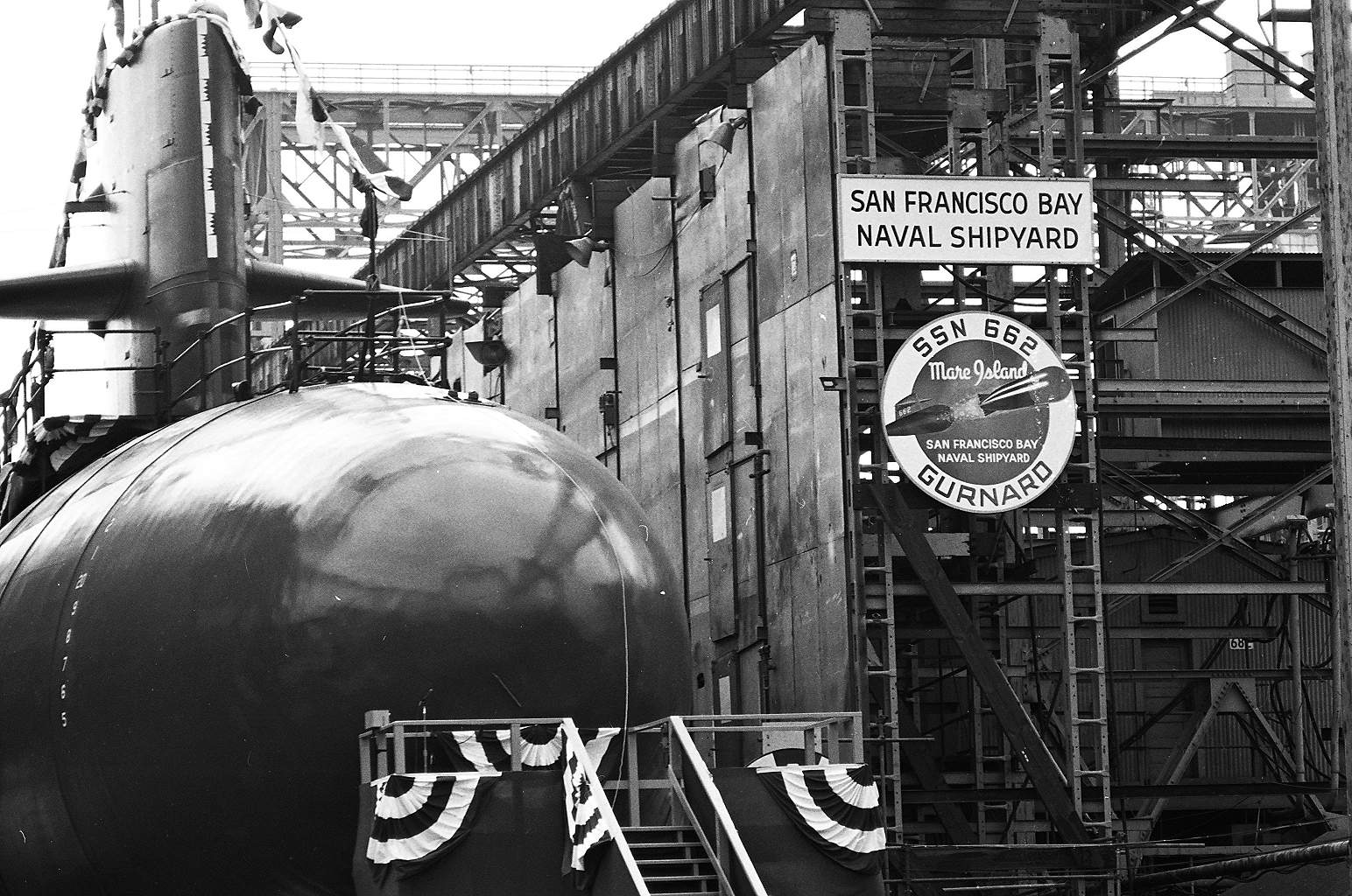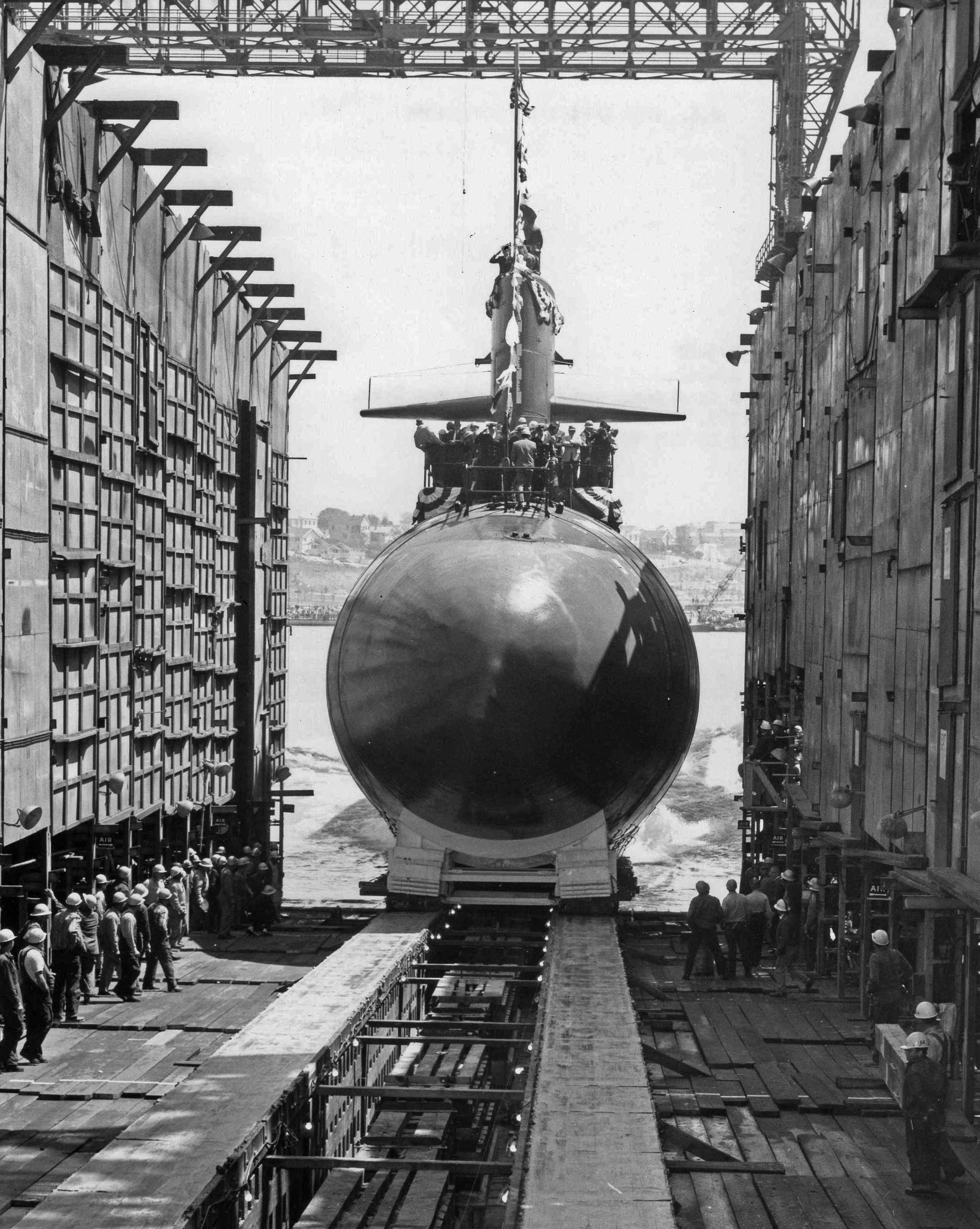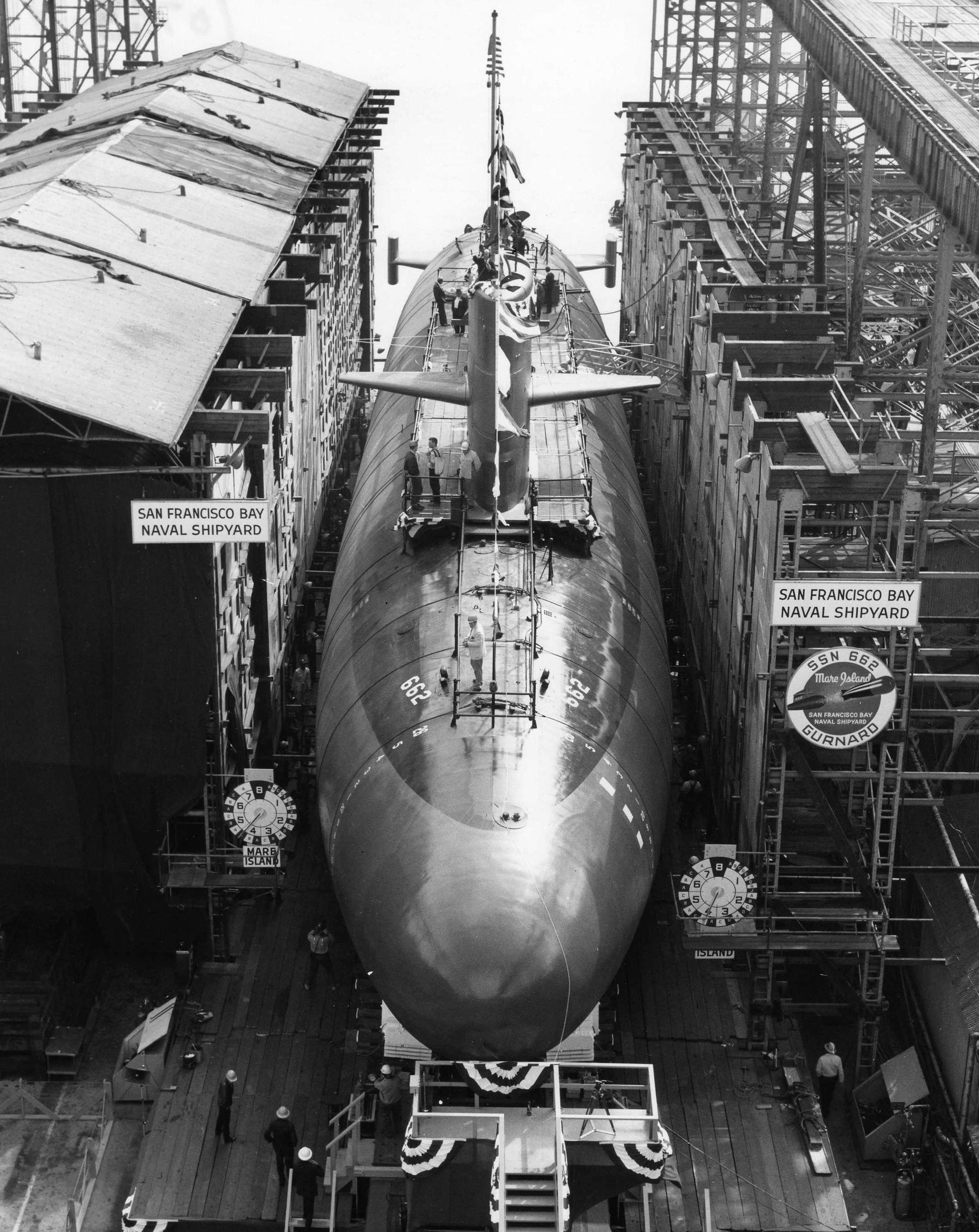 ![]() | 753k | View of the Christening of Gurnard (SSN-662), 20 May 1967. The Hawkbill (SSN-666) is under construction to the left. | Navy Photo # 77754-5-67, courtesy of the Vallejo Naval and Historical Museum via Darryl L. Baker. | |