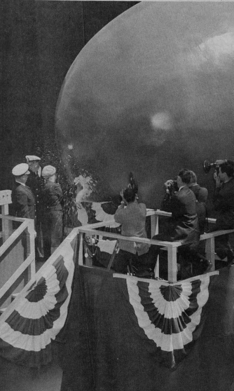 ![]() | 155k | News clipping from the 21 May 1967 edition of the Napa Register. Caption reads: Cameras click as Mrs. George P. Miller cracks a champagne bottle on the bow of the nuclear attack submarine, Gurnard (SSN-662), at Mare Island Saturday. Mrs. Miller, wife of the Congressman from California's 8th District, was sponsor at this ship's christening. | USN photo courtesy of Darryl L. Baker. | |