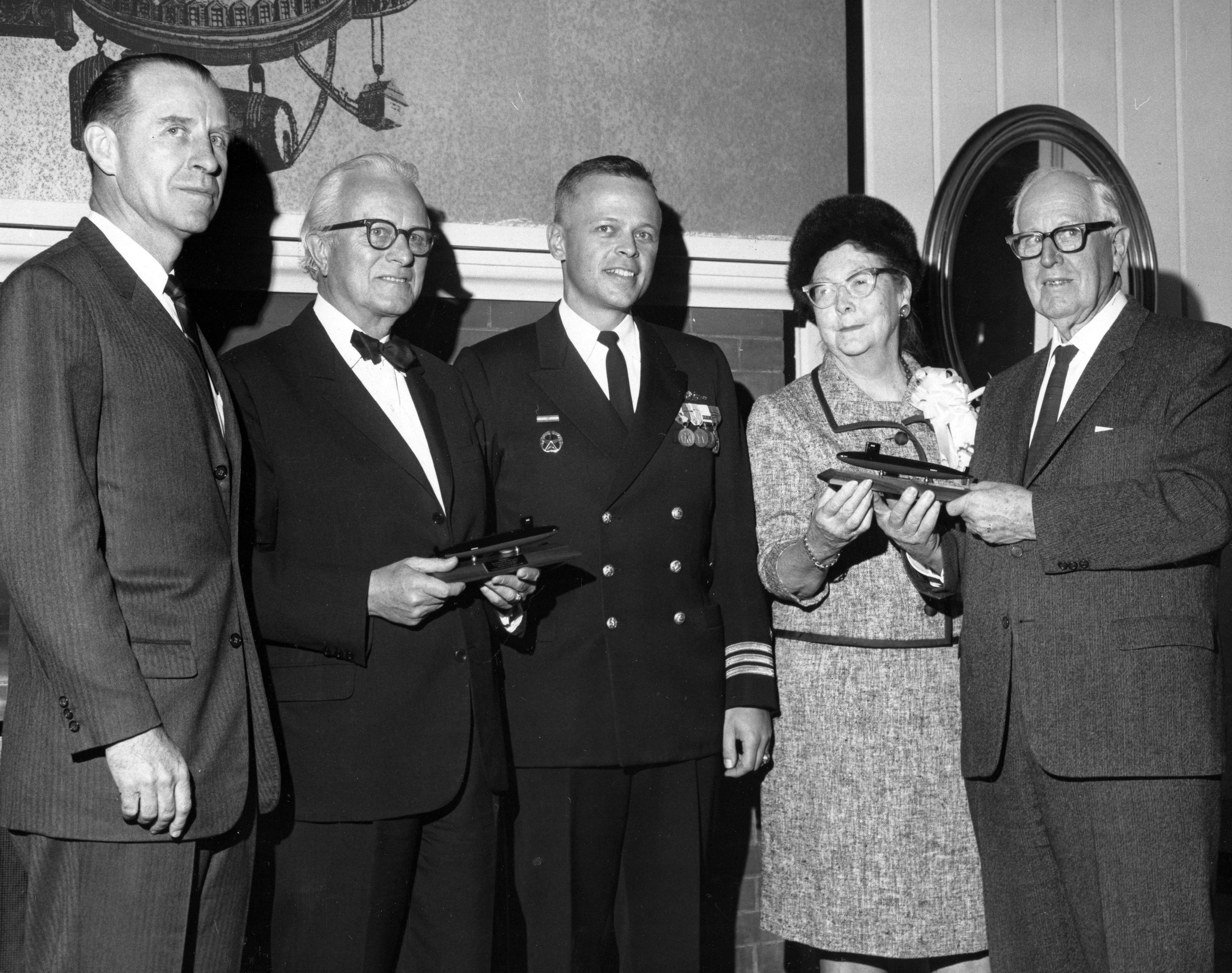 ![]() | 1.20k | News clipping from the 13 December 1968 edition of Mare Island Naval Shipyard newspaper. Photo taken at the reception following the commissioning of Gurnard (SSN-662) at Mare Island. Left to right: R. P. Metzger (Naval Reactors Representative), W. Sterling Cole (father of the Gurnard's skipper),CDR William S. Cole, Jr. (Commanding Officer) Gurnard, Mrs. George P. Miller (Sponsor), and Congressman Miller. | USN photo # 88186-12-68 TH courtesy of the Vallejo Naval and Historical Museum via Darryl L. Baker. | |