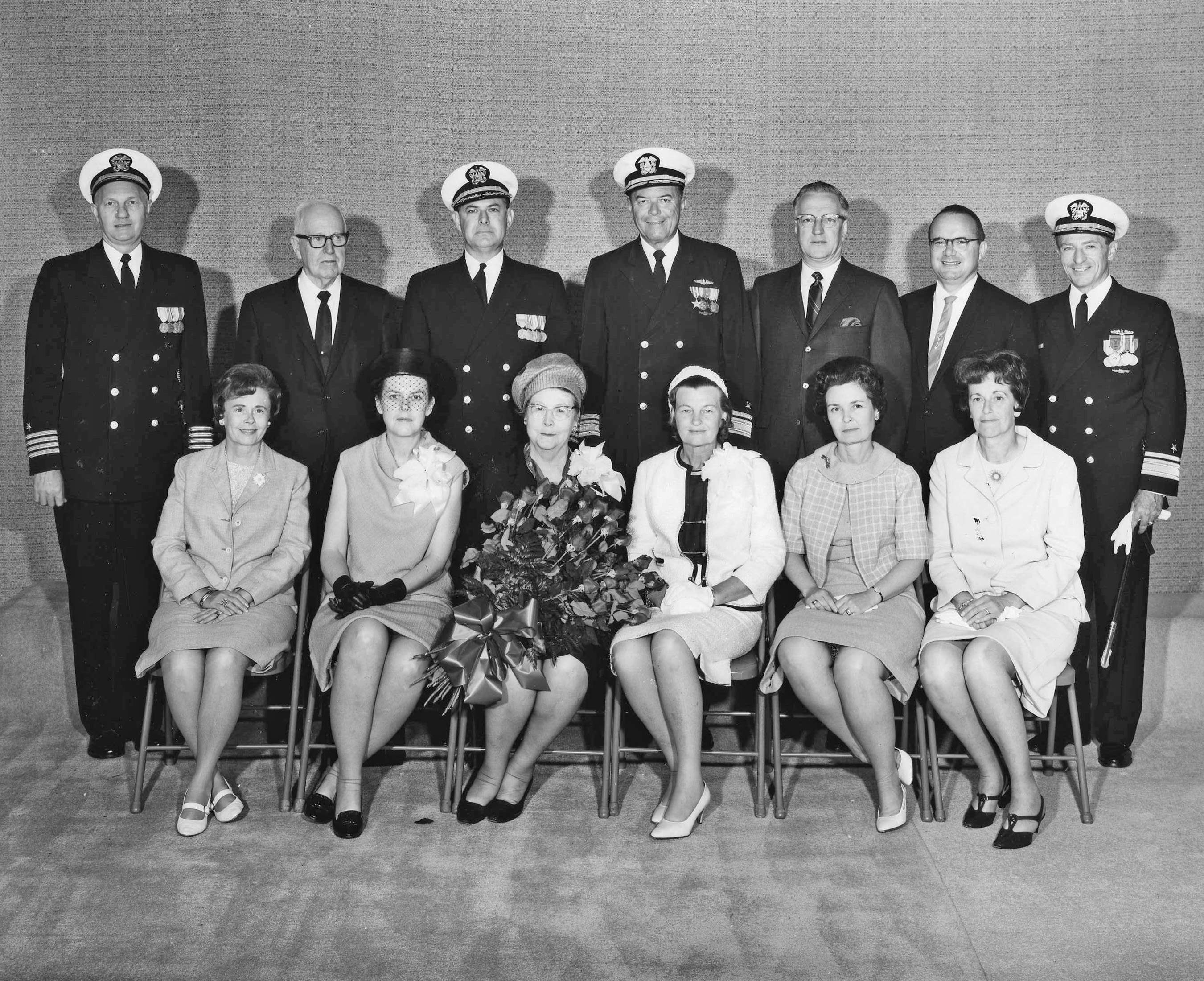 7![]() | 807k | This is the official party for the launching of Gurnard (SSN-662) 20 May 1967 at Mare Island. VIPS are from left to right: Front row: Mrs. Donald T. Holmes ; Mrs. Donald B. Muir (Matron of Honor); Mrs. George P. Miller (Sponsor); Mrs. J.H. McQuilkin, Mrs. C. L. Fears; Miss R. A. Holmes. Back row: Capt. Donald T. Holmes (Production Officer); Honorable George T, Miller (CA Congressman); Capt. C. L. Fears (Deputy Shipyard Commander); RADM Henry S Monroe (COMPHILTRAPAC); Mr. Donald Hughes (Trigger-man); Honorable Robert L. Leggett (CA Congressman); RADM Edward J. Fahy (COMNAVSYSCOM). | Navy Photo # 77761-5-67, courtesy of the Vallejo Naval and Historical Museum via Darryl L. Baker. | |