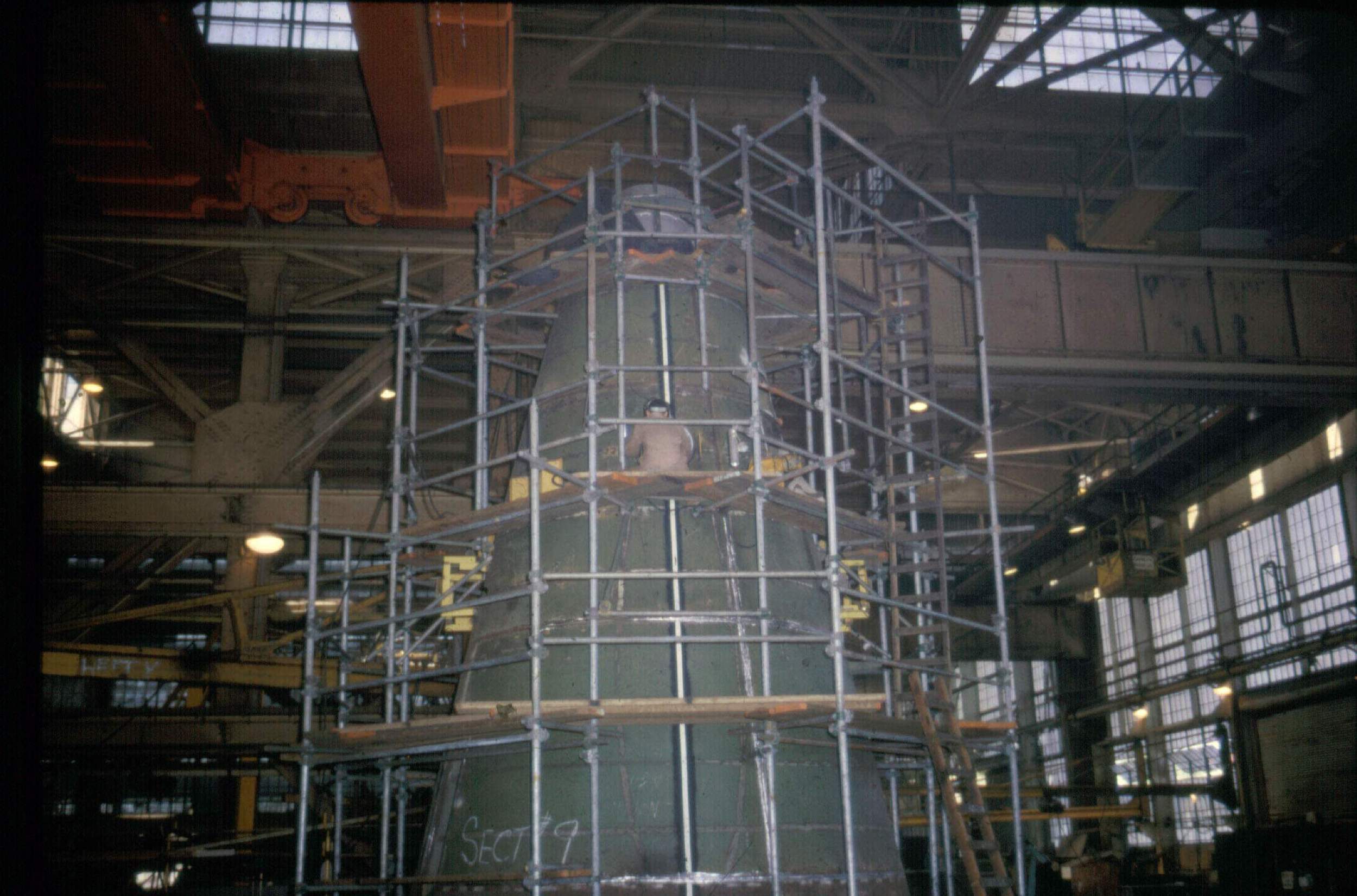 ![]() | 349k | The sonar dome for the Gurnard (SSN-662) under construction in the shipfitter shop at Mare Island in April 1966. | USN photo courtesy of Darryl L. Baker. | |