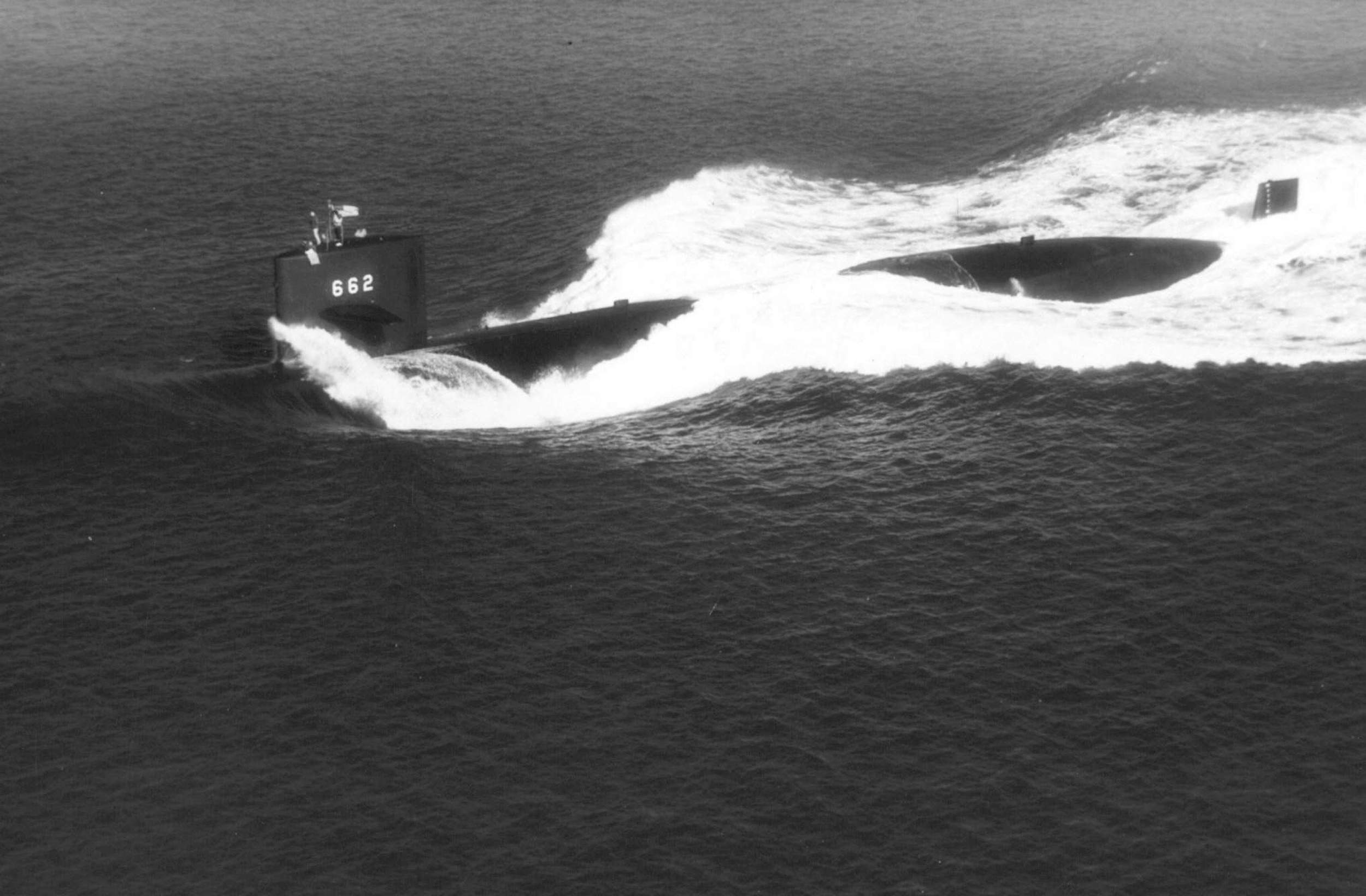 ![]() | 145k | Submerged submarines in tandem. | USN photo courtesy of Robert Hall. | |