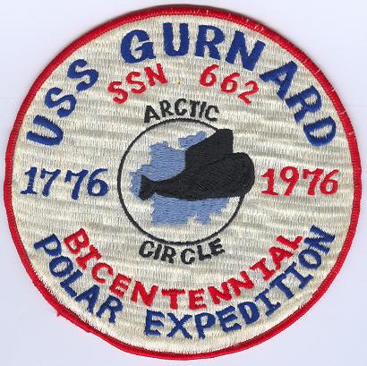![]() | 70k | Commemorative patch issued on the occasion of the Bicentennial Polar Expedition of the Gurnard (SSN-662), 1976. | Courtesy of Jack Treutle (of blessed memory). | |