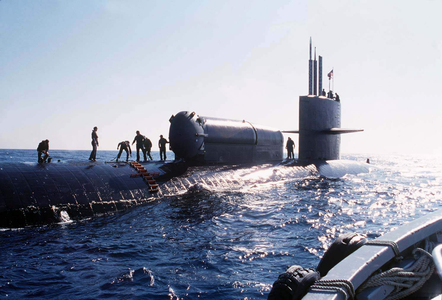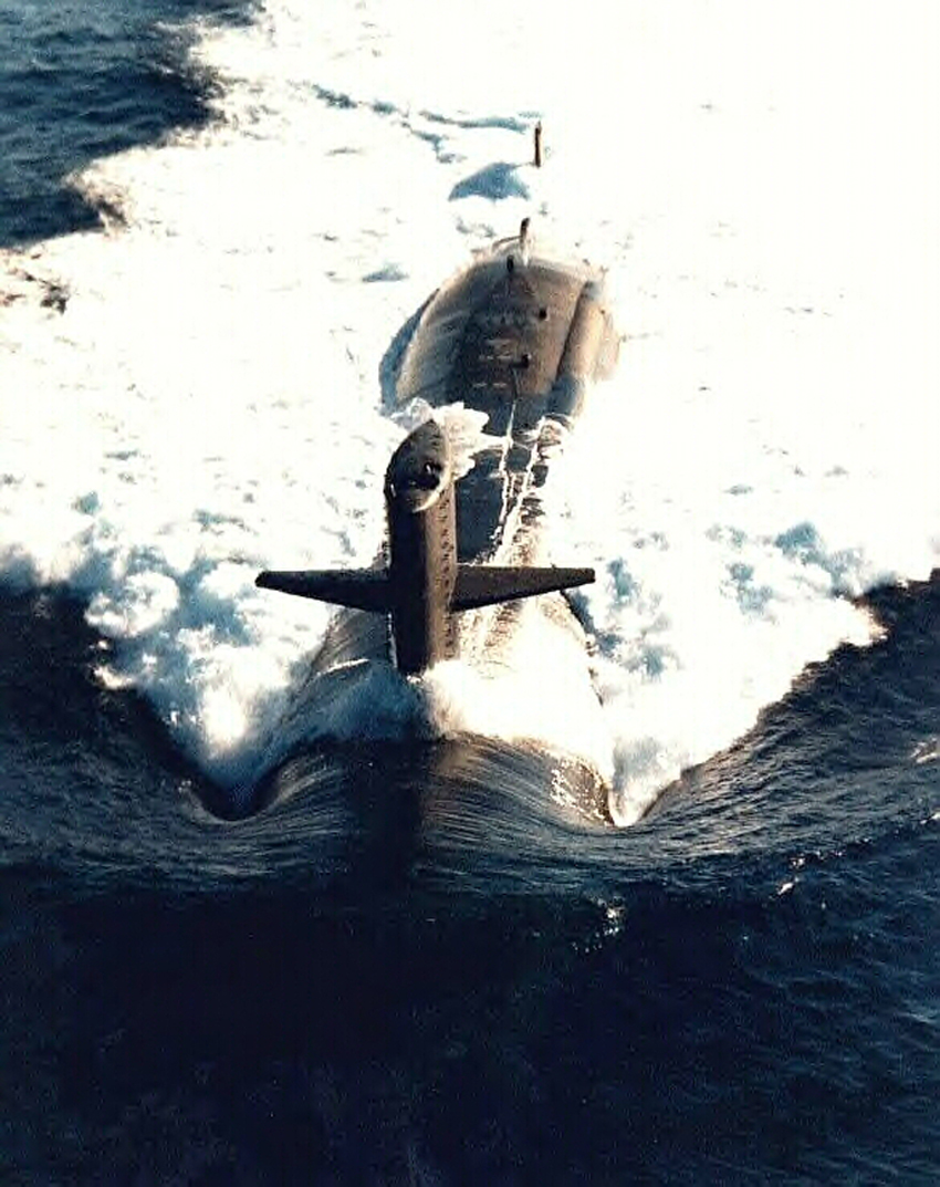 ![]() | 145k | Submerged submarines in tandem. | USN photo courtesy of Robert Hall. | |