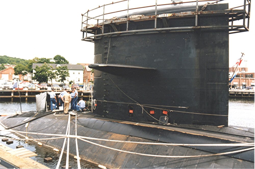![]() | 129k | View of the sail of the Archerfish (SSN-678), May 1995. | Photo by Ken Hart. | |