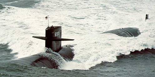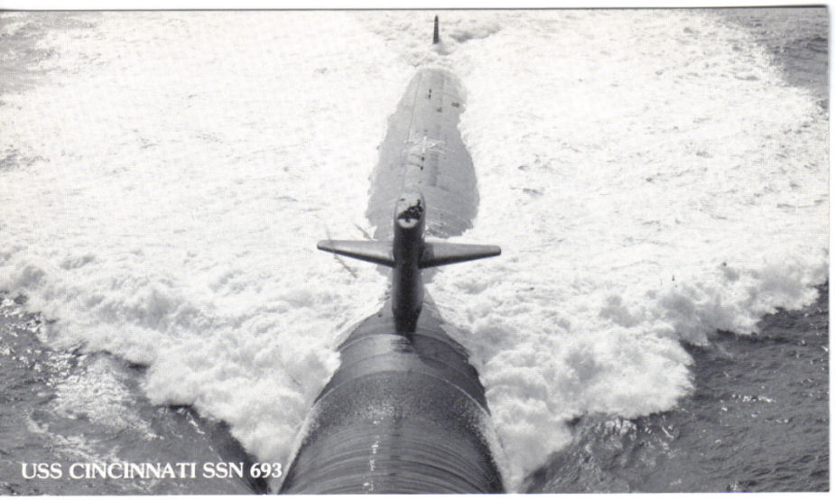 ![]() | 462k | Cincinnati (SSN-693) lies in waiting for someone to tell me where she is. | Photo courtesy of Richard Miller, BMCS, USNR RET. | |