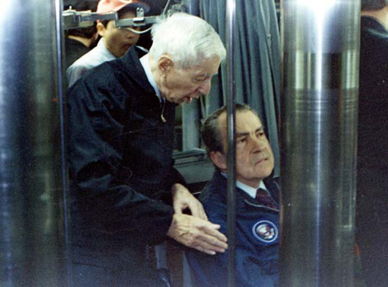 ![]() | 286k | Former President Nixon behind the periscope with Admiral Rickover during a visit aboard the Cincinnati (SSN-693), Fall 1980. | Photo courtesy of Francis R. Murphy via mackinweb.net. | |