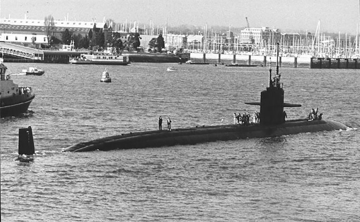 ![]() | 231k | The Los Angeles class nuclear-powered attack submarines Cincinnati (SSN-693) and Memphis (SSN-691) display ensigns and union jacks during the commissioning ceremony for their sister ship, the Salt Lake City (SSN-716). Moored alongside the submarine tender L.Y. Spear (AS-36) is the nuclear-powered attacks submarine Richard B. Russell (SSN-687) on 12 May 1984. | USN photo # DN-ST-84-09330, by PH1 Wujcik, from the Department of Defense Still Media Collection, courtesy of dodmedia.osd.mil. | |
