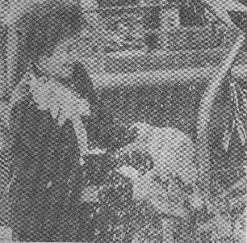 220k | Newspaper photo: Mrs. Keating christens the Cincinnati (SSN-693). | Photo courtesy of Dale Hargrave. | |