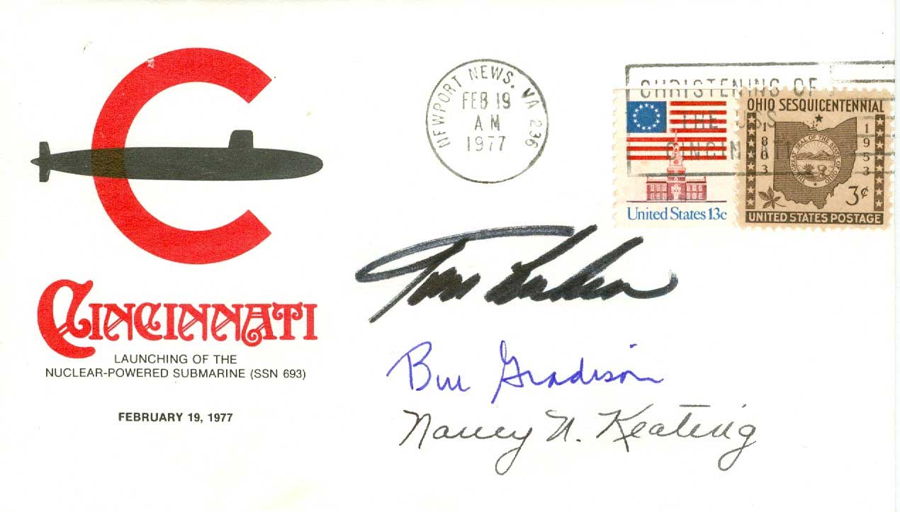 102k | Launching cover signed by Mrs. Keating and Ohio Representatives Thomas Luken and Willis D. Gradison, both of whom were speakers at the ceremony. | Photo courtesy of Dale Hargrave. | |