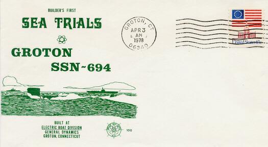 22k | Commemorative post card marking the builder's first sea trials of the Groton (SSN-694), on 3 April 1978. | Courtesy of Richard Leonhardt. | |