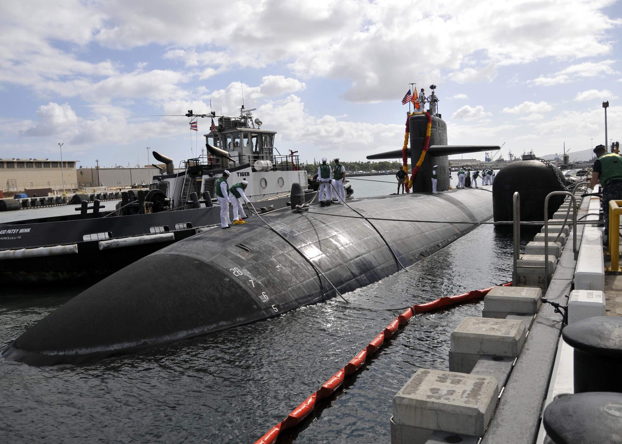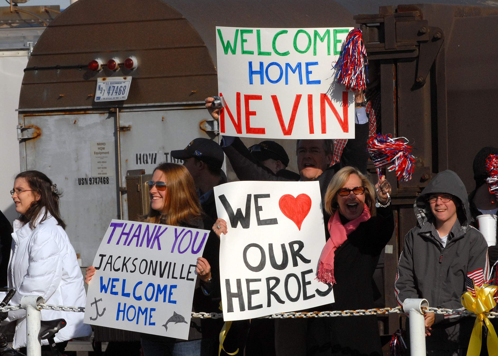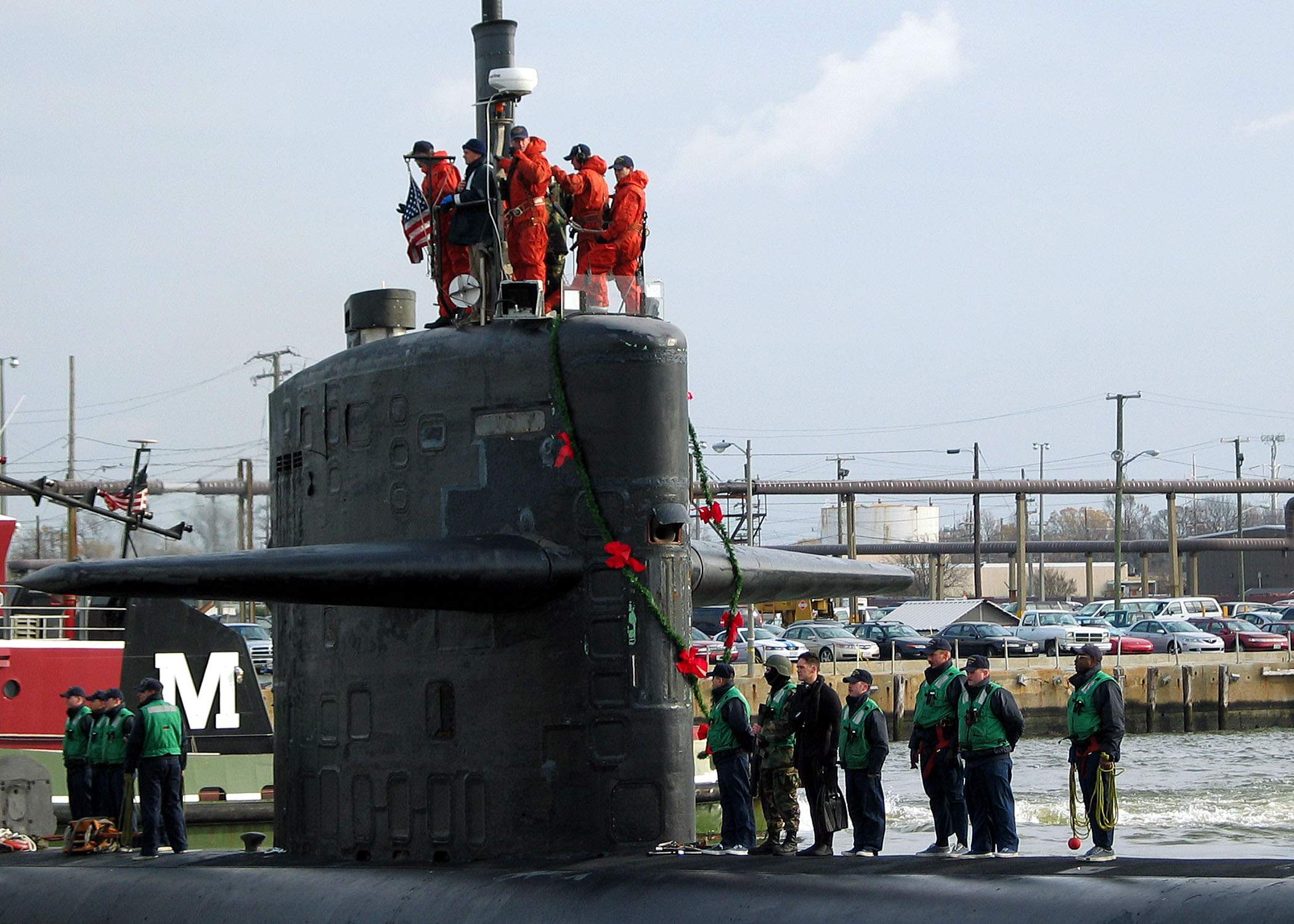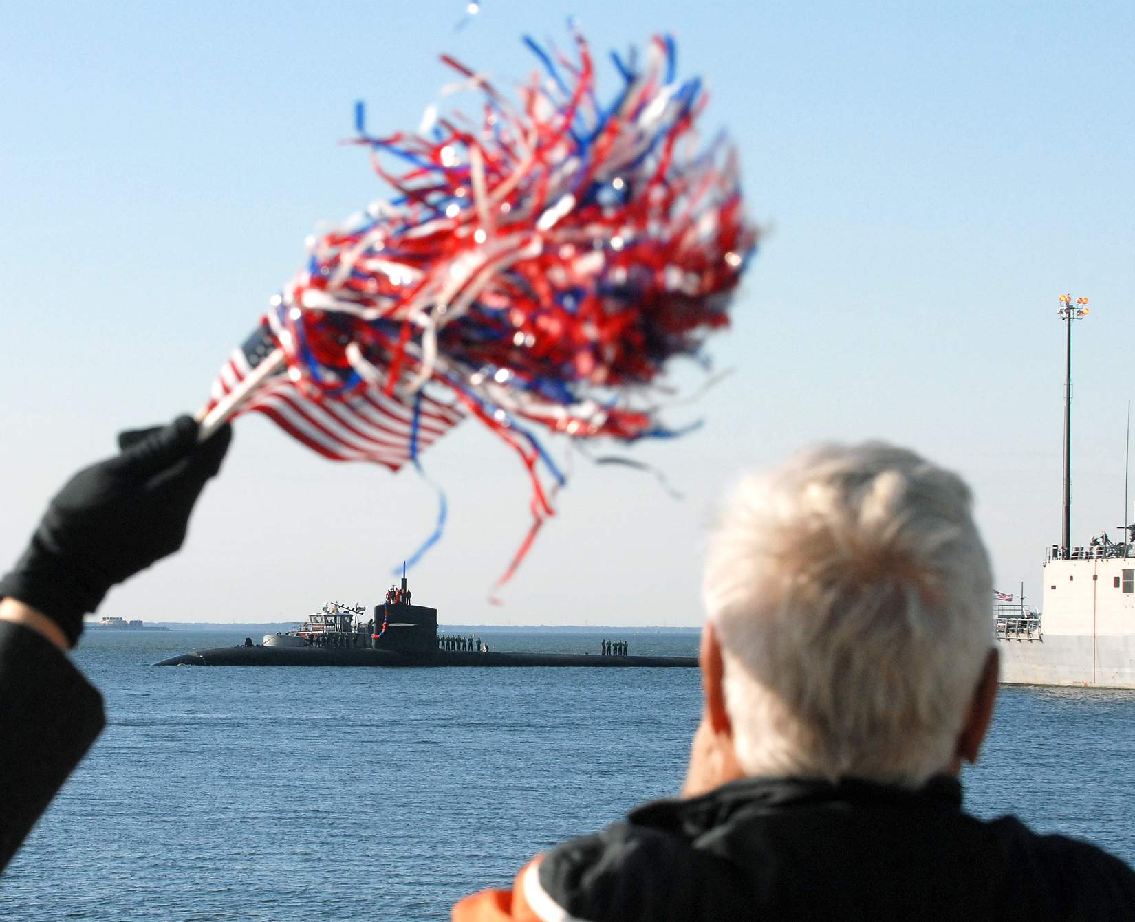 ![]() | 179k | Family members of the crew of attack submarine Jacksonville (SSN-699) watch as the boat returns from a six-month deployment. This is Jacksonville first deployment in five years after a recent refueling and modernization, and the first deployment for 80% of the crew. | U.S Navy photo # N-7668G-017 by Mass Communication Specialist 2nd Class Xander Gamble, courtesy of news.navy.mil. | |