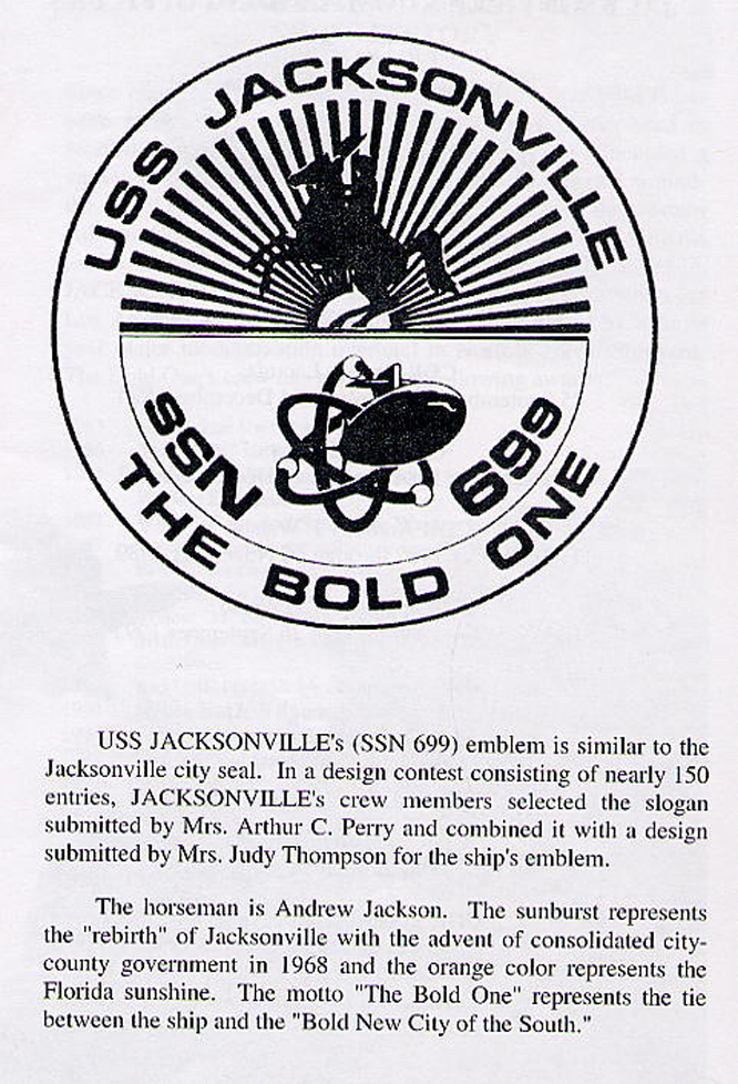 ![]() | 533k | Emblem of Jacksonville (SSN-699). | Photo courtesy of Scott Koen & ussnewyork.com. | |