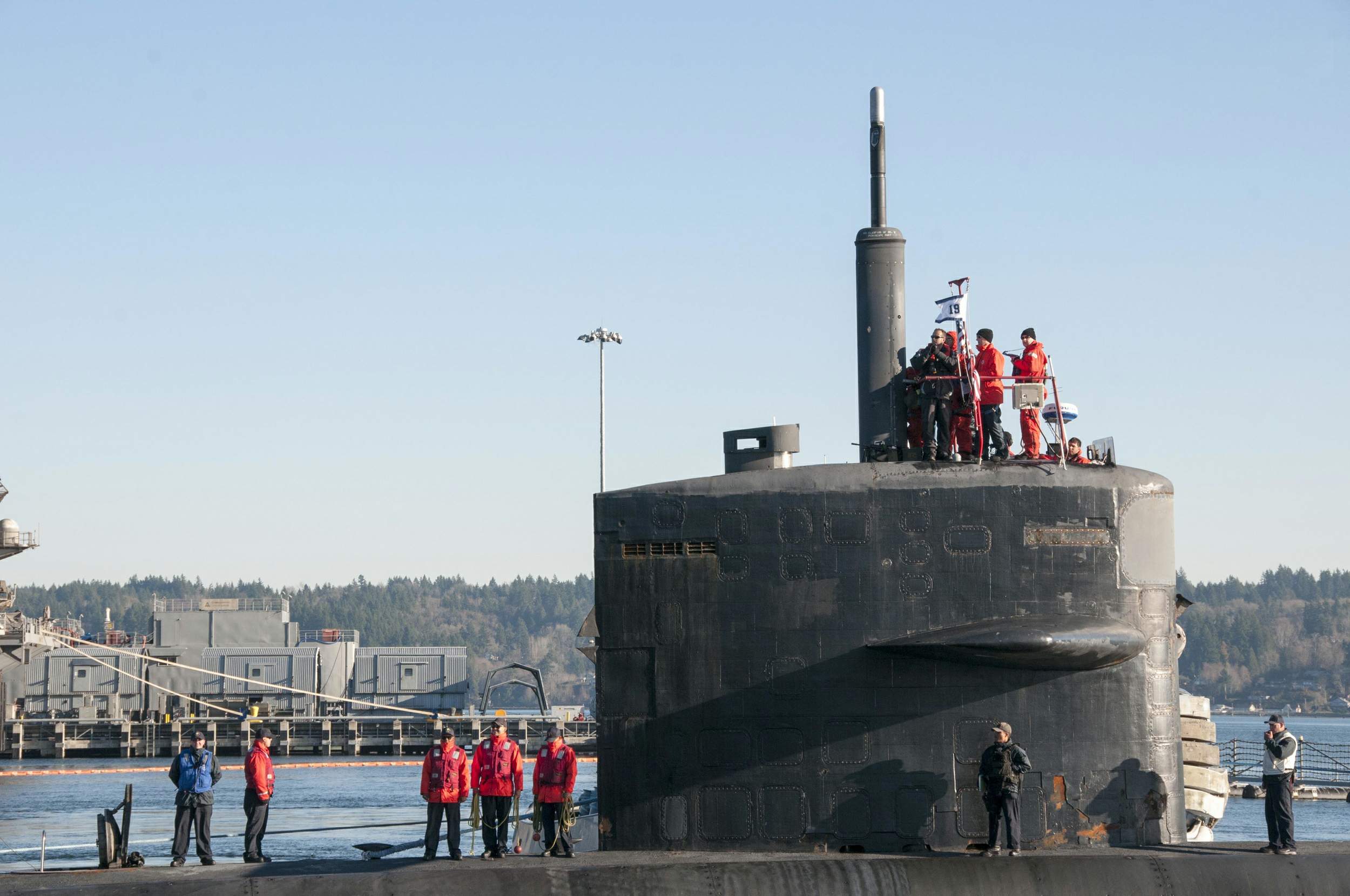 ![]() | 279k | The submarine Jacksonville (SSN-699) arrives at Naval Base Kitsap-Bremerton to commence its inactivation and decommissioning process on 11 December 2017. Jacksonville departed its homeport of Pearl Harbor, Hawaii, for the last time, 4 December 2017 to make way to Bremerton, Wash. | USN photo # 171211-N-UD469-068 by Mass Communication Specialist 1st Class Amanda R. Gray courtesy of news.navy.mil. | |