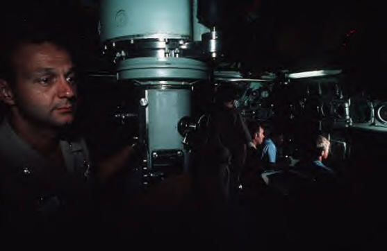 ![]() | 34k | In this dimly lighted view of the interior of the nuclear-powered attack submarine Oklahoma City (SSN-723) control room, a Navy commander at the periscope and the bow plane control personnel at their stations have a mystic appearance reflective of the submarine reputation of stealth on 1 January 1997. | Official USN photo # DN-ST-97-00708 by PH1 Mike Flynn, from the Department of Defense Still Media Collection, courtesy of dodmedia.osd.mil.& submitted by Bill Gonyo. | |