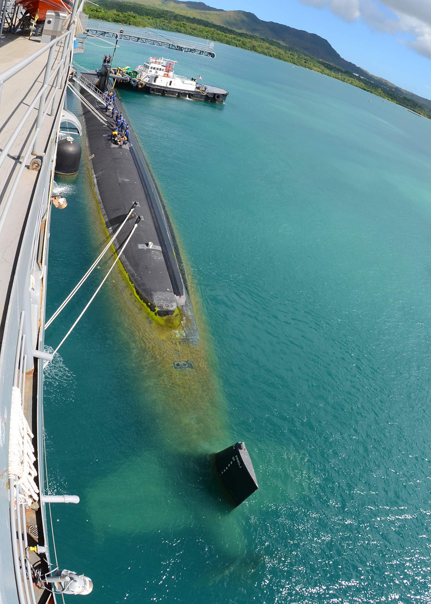 ![]() | 1.38k | With the mooring of the Los Angeles class submarine Bremerton (SSN-698) on April 16, Apra Harbor now has seven submarines in port. This is the highest number of submarines in the harbor since the re-establishment of Commander, Submarine Squadron (SUBRON) 15 in 2001. The submarines are conducting maintenance prior to continuing their deployments. The submarines include (from top left, clockwise), the Japan Maritime Self-Defense Force submarine JS Hakuryu (SS-503), the Los Angeles class submarines Cheyenne (SSN-773), Bremerton, and Charlotte (SSN-766), Ohio (SSGN-726), the Los Angeles class submarines Oklahoma City (SSN-723), and Key West (SSN-722), and the submarine tender Frank Cable (AS-40) on 17 April 2013. | USN photo 130417-N-LS794-001 by Mass Communication Specialist 1st Class Jeffrey Jay Price. | |