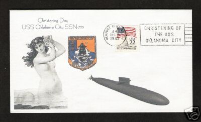 ![]() | 17k | Commemorative post mark on the occasion of Oklahoma City (SSN-723) christening, at Newport News Shipbuilding and Drydock Co., Newport News, VA., 1985. | Courtesy of Jack Treutle (of blessed memory). | |