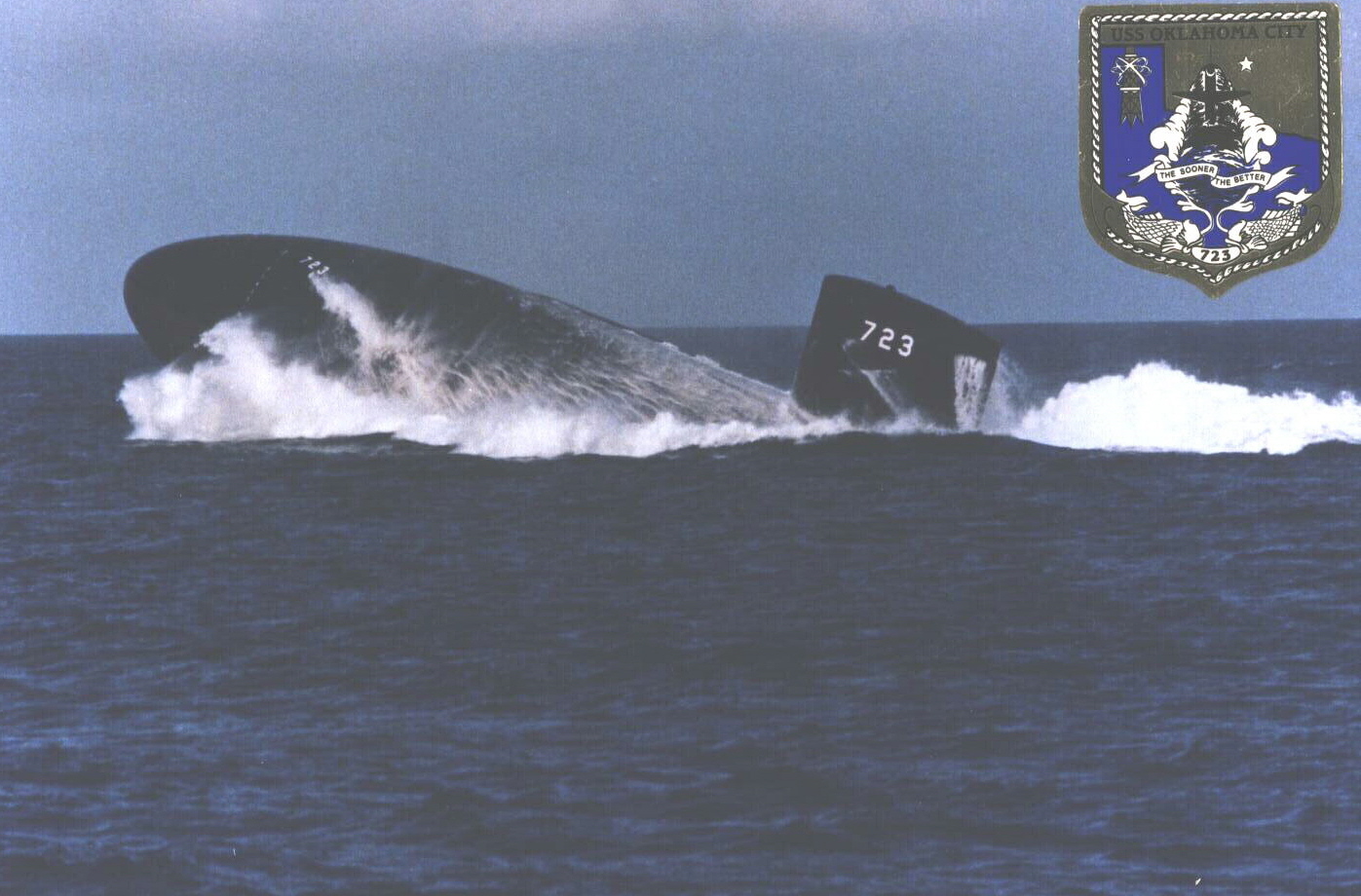 ![]() | 179k | Oklahoma City (SSN-723), broaching, probably during her alpha sea trials off the Atlantic coast, mid 1980's. | Contributed by Fabio Pena. | |