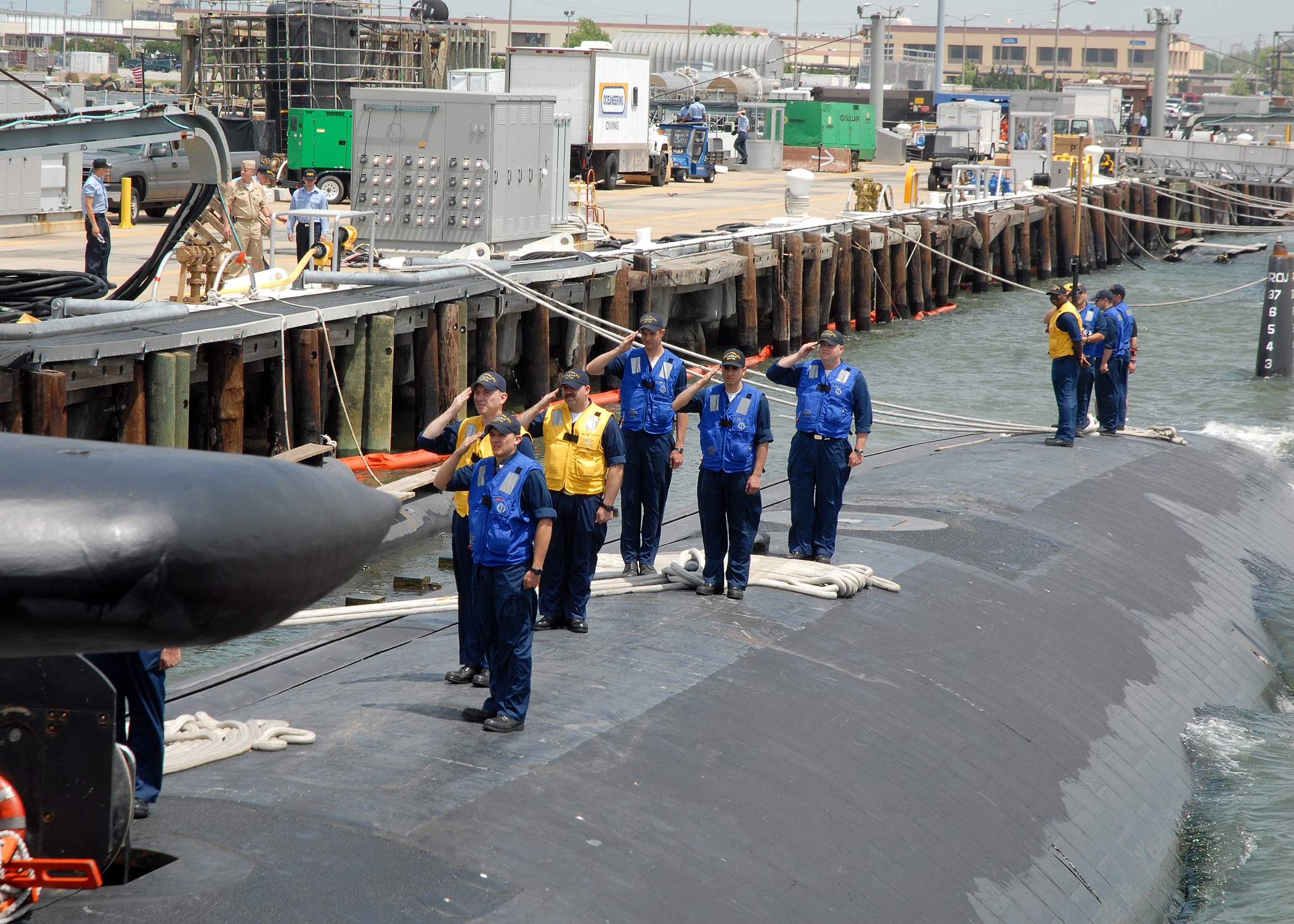 ![]() | 153k | The attack submarine Oklahoma City (SSN-723) prepares for sea at Naval Station Norfolk on 3 September 2008. Oklahoma City will travel to Portsmouth Naval Shipyard, Portsmouth, N.H., for a scheduled overhaul, marking the beginning of a two-year homeport shift to Portsmouth. | USN photo # N-7705S-008 by Mass Communication Specialist 1st Class Todd A. Schaffer, courtesy of news.navy.mil. | |