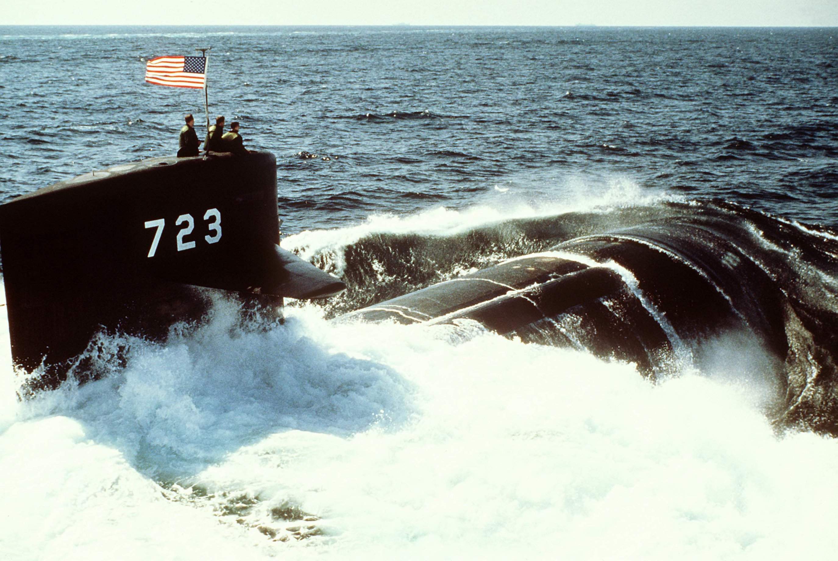 ![]() | 446k | A starboard quarter view of the nuclear-powered attack submarine Oklahoma City (SSN-723) underway on 26 February 1988. | Official USN photo # DN-ST-89-01401 by Chris Oxley, courtesy of dodmedia.osd.mil. | |