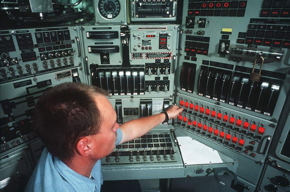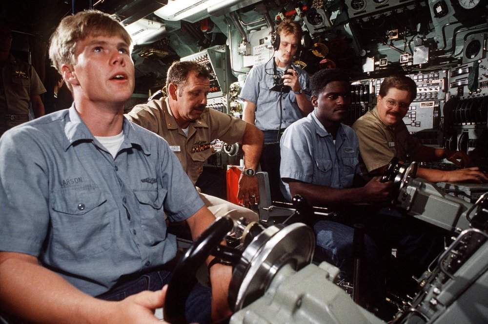 ![]() | 88k | Crew members man the control station aboard the nuclear-powered attack submarine Oklahoma City (SSN-723) on 1 September 1991. | Official USN photo # DN-ST-94-00622 by PH1 Mike Flynn, from the Department of Defense Still Media Collection, courtesy of dodmedia.osd.mil & submitted by Bill Gonyo. | |