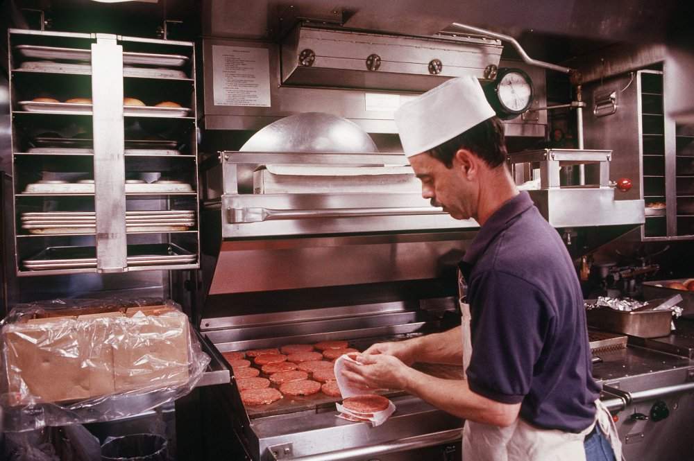 ![]() | 80k | A Navy cook on board the nuclear-powered attack submarine Oklahoma City (SSN-723) prepares hamburgers for the crews noon time meal on 1 January 1997. | Official USN photo # DN-ST-97-00688, by PH3 Bruce W. Moore,from the Department of Defense Still Media Collection, courtesy of dodmedia.osd.mil & submitted by Bill Gonyo. | |