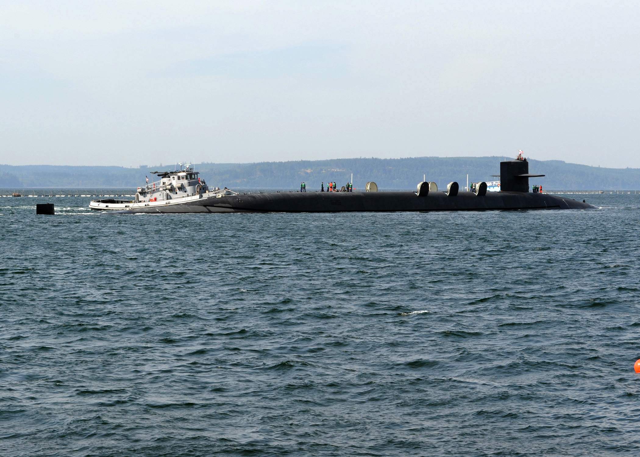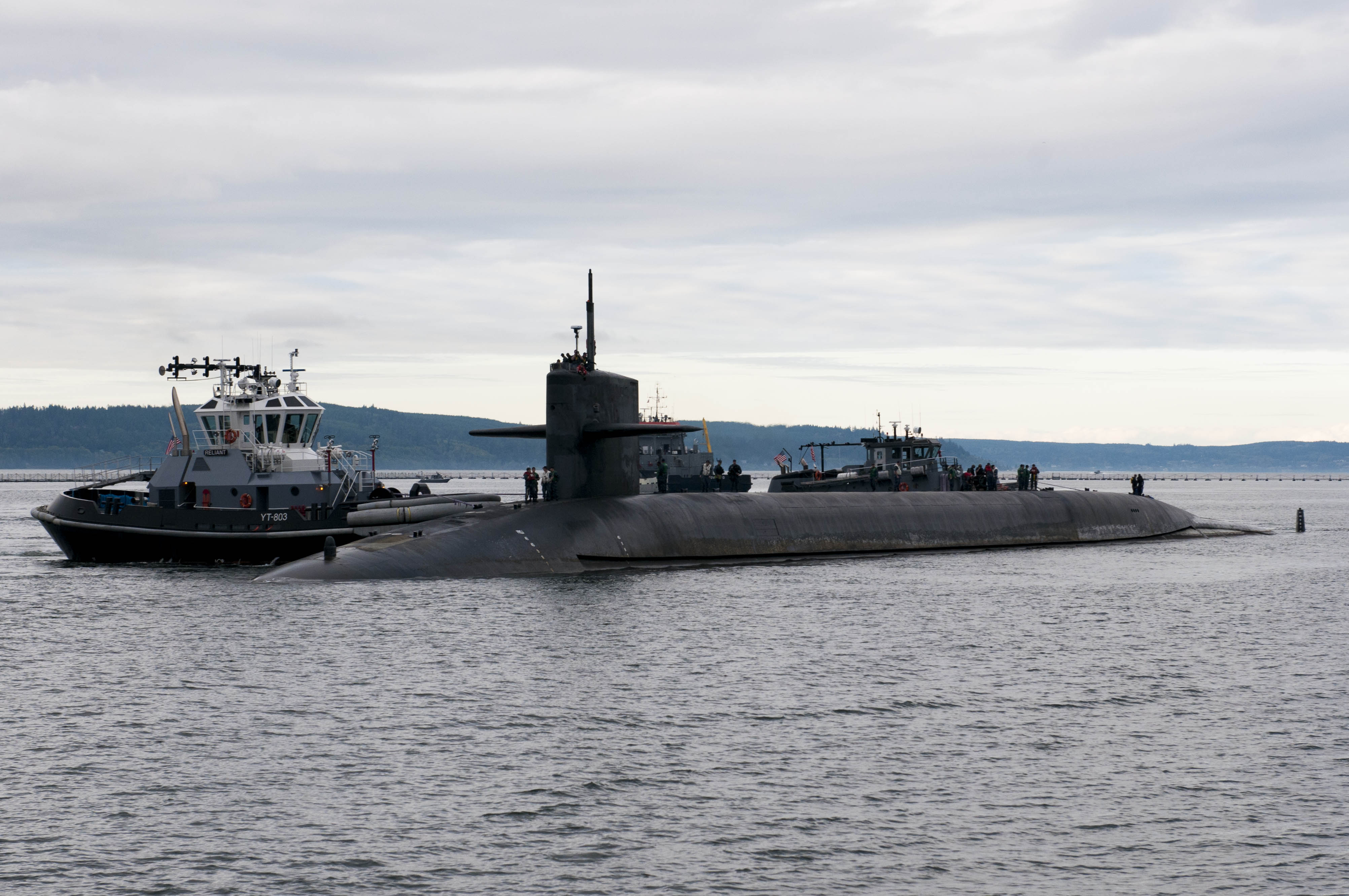| 840k | The Alabama (SSBN-731) returns to Naval Base Kitsap-Bangor following a routine strategic deterrent patrol on 6 September 2016. Alabama is one of eight ballistic-missile submarines stationed at the base providing the most survivable leg of the strategic deterrence triad for the United States. | US Navy photo #160906-N-UD469-009 by Mass Communication Specialist 1st Class Amanda R. Gray, courtesy of news.navy.mil.