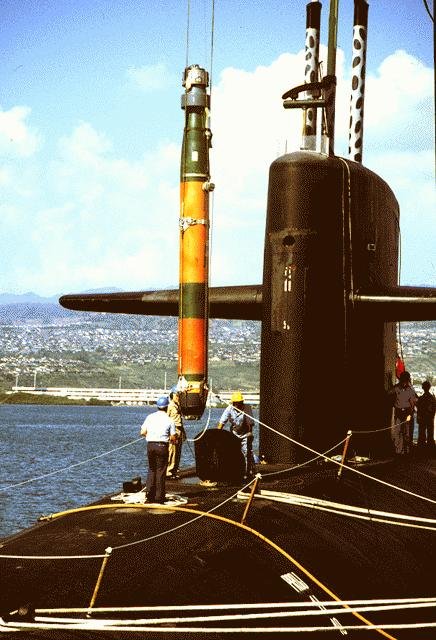 | 75k | Alabama (SSBN-731), loading MK-48 torpedoes. | USN photo courtesy of the Federation of American Scientists. |