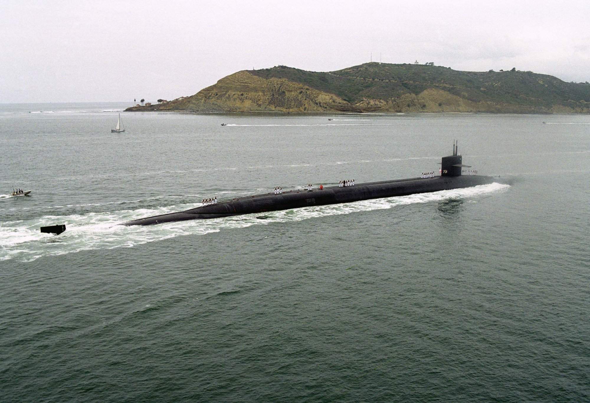| 309k | The Alabama (SSBN-731) passes Cabrillo National Monument as it heads for the Naval Submarine Base Point Loma, California, 16 September 2000.