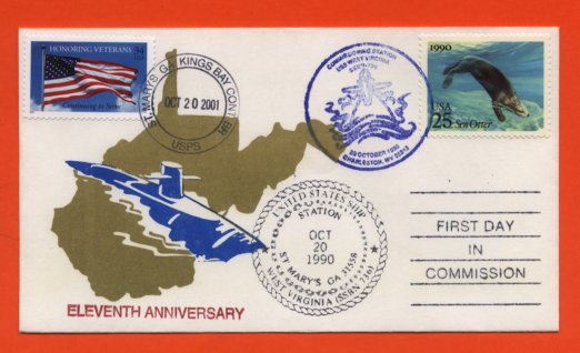 ![]() | 38k | Commemorative post mark on the 11th year of the commissioning of the West Virginia (SSBN-736), 20 October 2001. | Courtesy of Jack Treutle (of blessed memory). | |