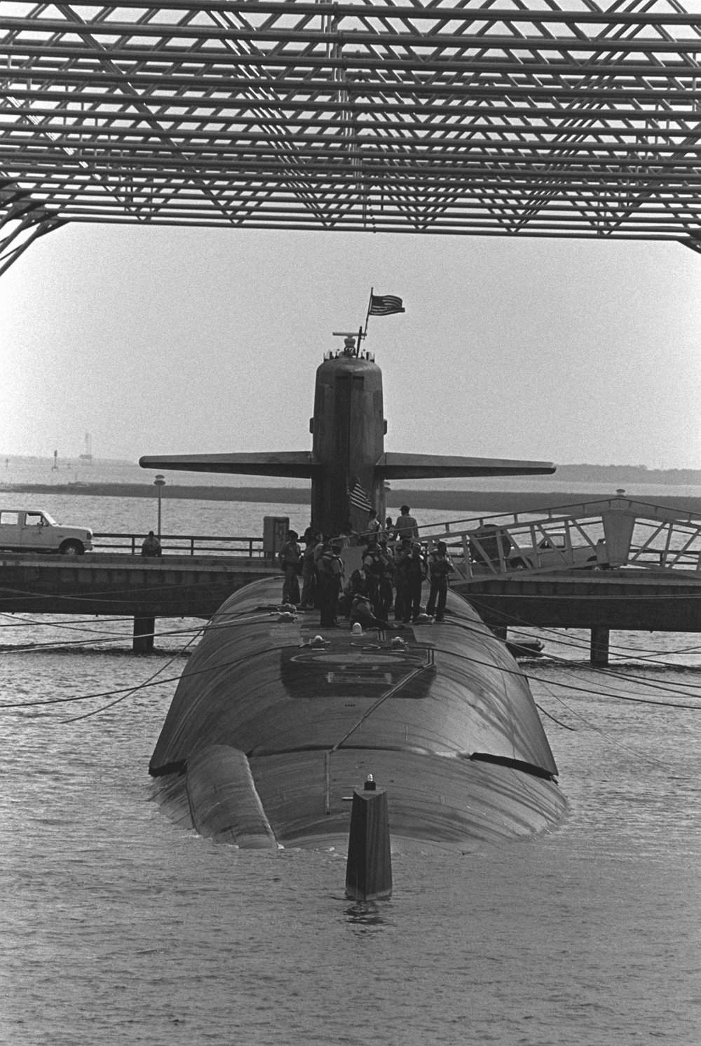 ![]() | 189k | A stern-on view of the ballistic missile submarine West Virginia (SSBN-736) located inside the Magnetic Silencing Facility at Naval Submarine Base Kings Bay on 1 November 1994. The facility is used to determine a submarine's magnetic signature in order to minimize the possibility of detection. | USN photo # DN-SN-95-01504, by Julie Irwin from the Department of Defense Still Media Collection, courtesy of dodmedia.osd.mil. | |
