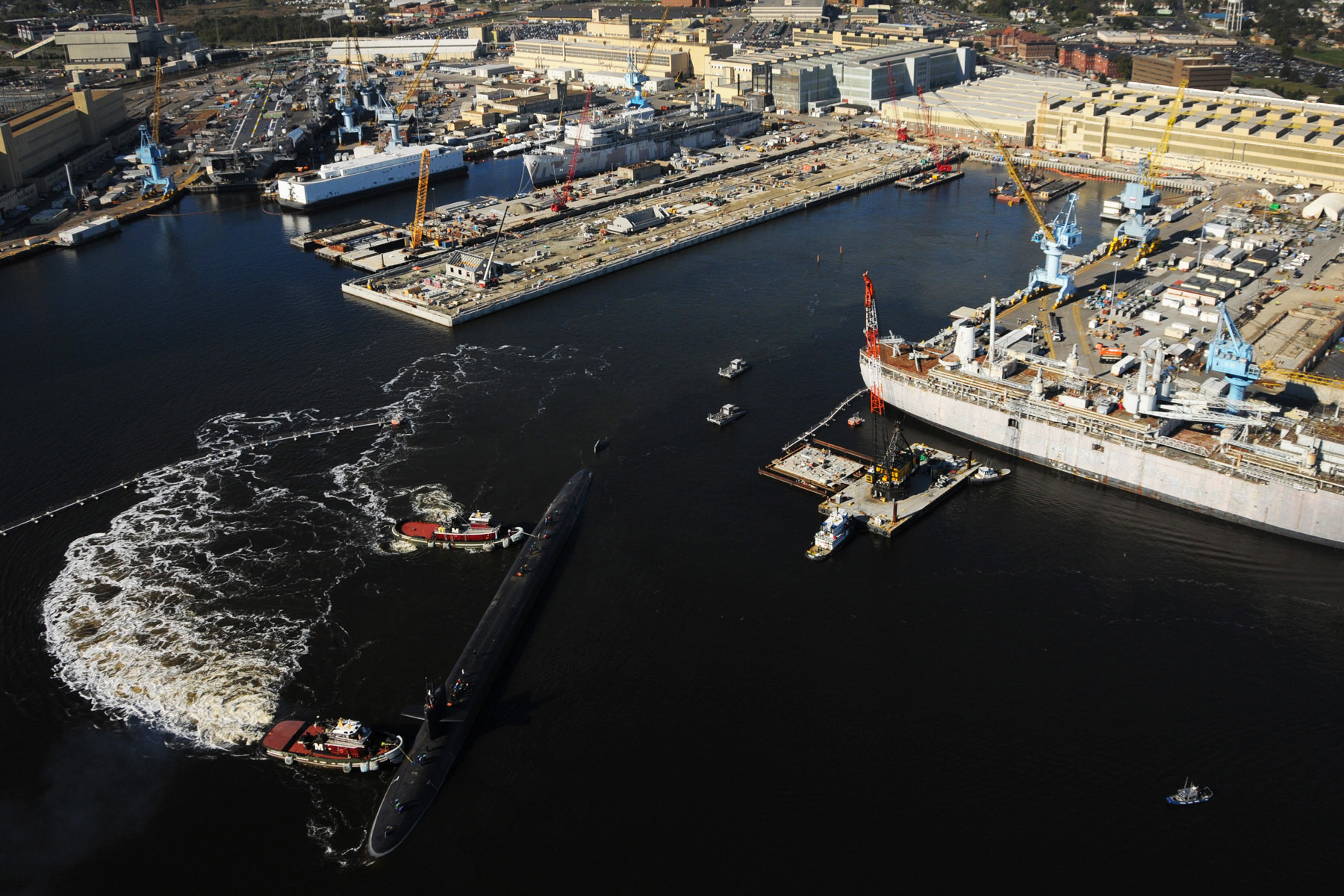 ![]() | 605k | The West Virginia (SSBN-736) departs Norfolk Naval Shipyard in Portsmouth, Va., following an engineering refueling overhaul on 24 October 2013. | US Navy photo # 131024-N-ZN152-014 by Mass Communication 2nd Class Ernest R. Scott, courtesy of news.navy.mil. | |