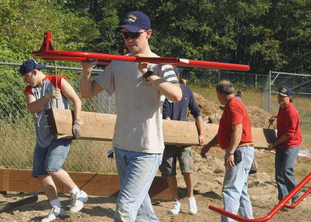 | 61k | Machinist Mate Fireman (MMFN) Chance Dean Bridges (foreground) carry a piece of playground equipment while other USN Sailors carry a large plank of wood during a community project at Breidablik Elementary School at Poulsbro, Washington (WA) on 12 August 2006. The Sailors are crew-members aboard Ohio Class Fleet Ballistic Missile Submarine Louisiana (SSBN-743).